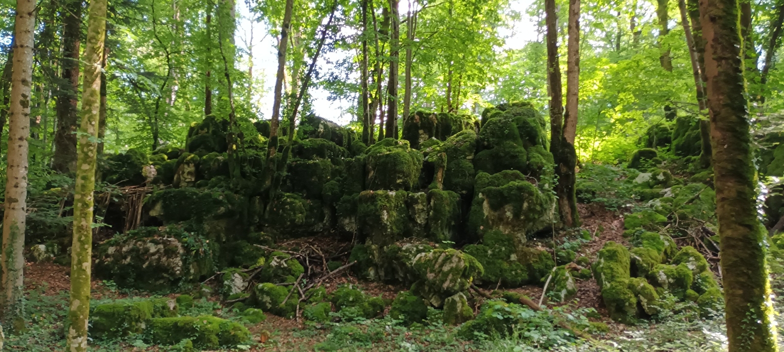 Le sentier Karstique chemine dans le Grand Bois avec une succession de curiosités topographiques. Cet itinéraire regorge de points remarquables tels que la Grande Doline, la Grotte du Porche vert, le Puits Noir, le Gouffre du Chat Sauvage, le Puits Saint-Grosjean ou encore le Puits Sylvain.