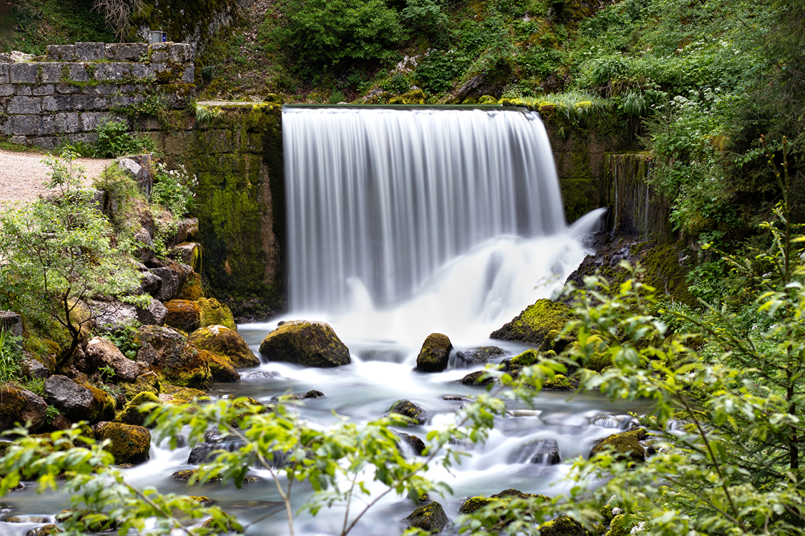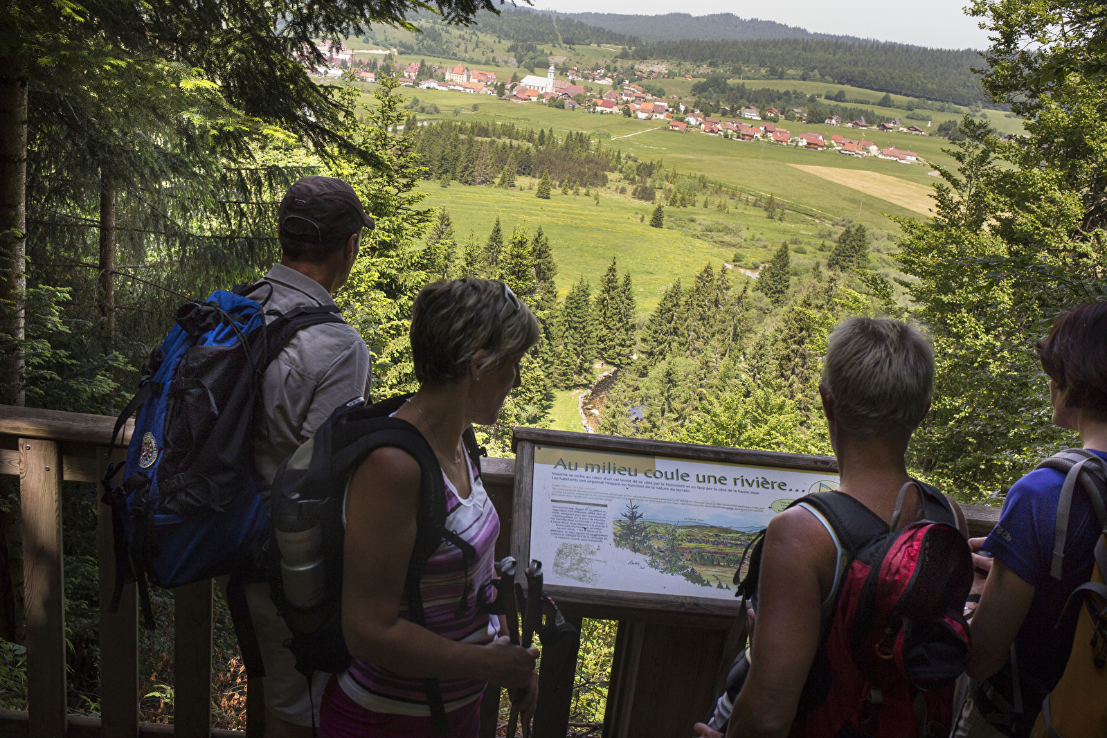 C’est à 942 m d’altitude à Mouthe, dans le triangle nordique du Haut-Doubs, que le Doubs, qui donne son nom au département, prend sa source en jaillissant d’un siphon de 55 m. Lunatique et versatile dans sa première jeunesse comme tout au long de son parcours de 430 km, le Doubs a été baptisé « dubius » par Jules César, en raison de son tempérament indécis. Le sentier d’interprétation de la source décrit par des tables de lecture le milieu environnant.