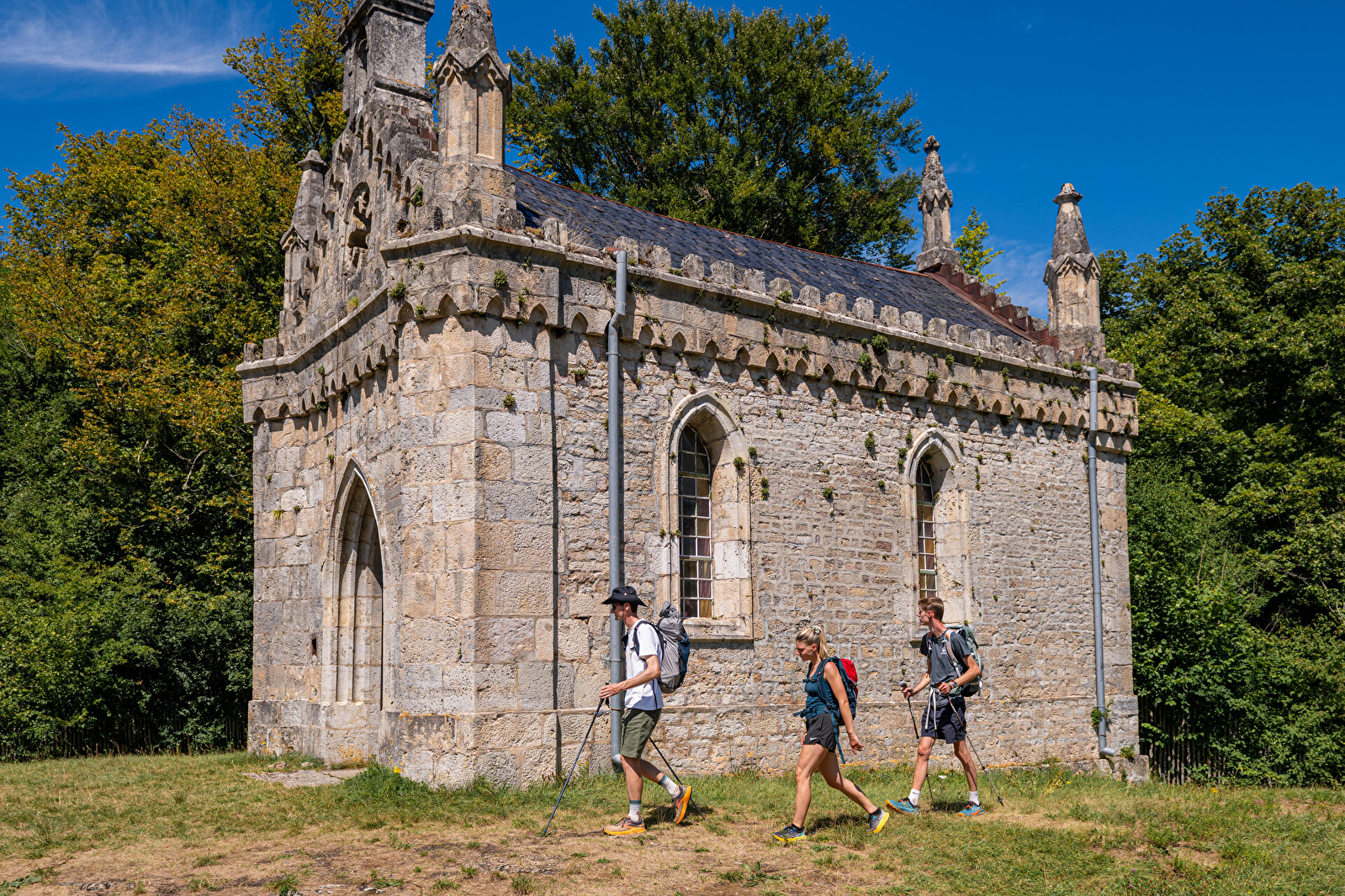C'est le meilleur moyen de découvrir les paysages de la vallée du Cusancin. Prenez de la hauteur sur le village de Val de Cusance depuis le belvédère aux abords de Montivernage. Sans oublier la montée à la chapelle de Saint-Erminfroid où vous pourrez sonner la cloche qui retentira dans toute la vallée. La balade se termine par la découverte des deux sources du Cusancin : la source bleue et la source verte.