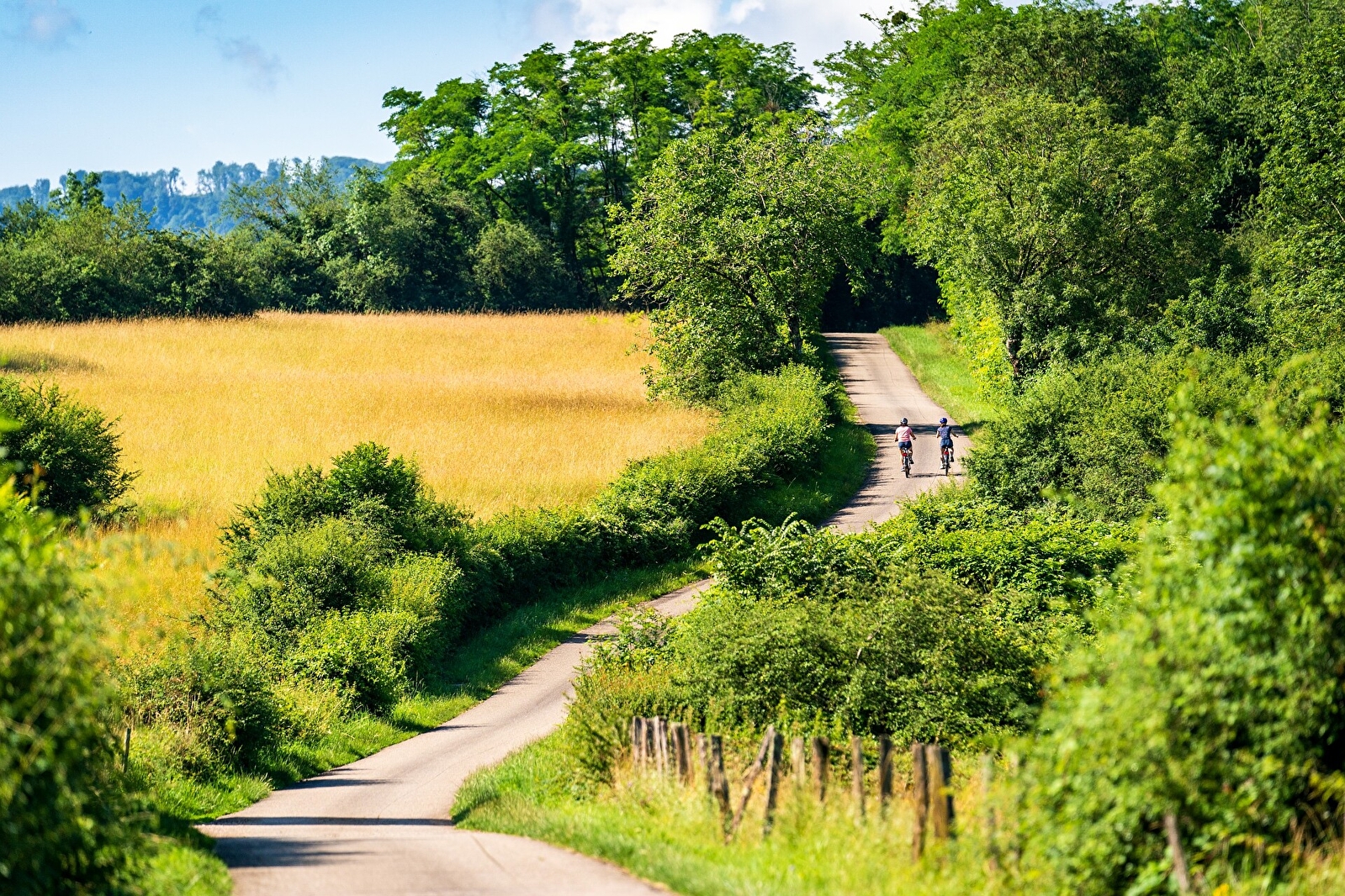 Côteaux, reculées, falaises, panoramas sur la Bourgogne, châteaux, églises, villages vignerons... Ce circuit facile de 42,2km enchaine les plus beaux sites du Sud-Revermont, une région à découvrir.Suivre le balisage vélo 26 bleu