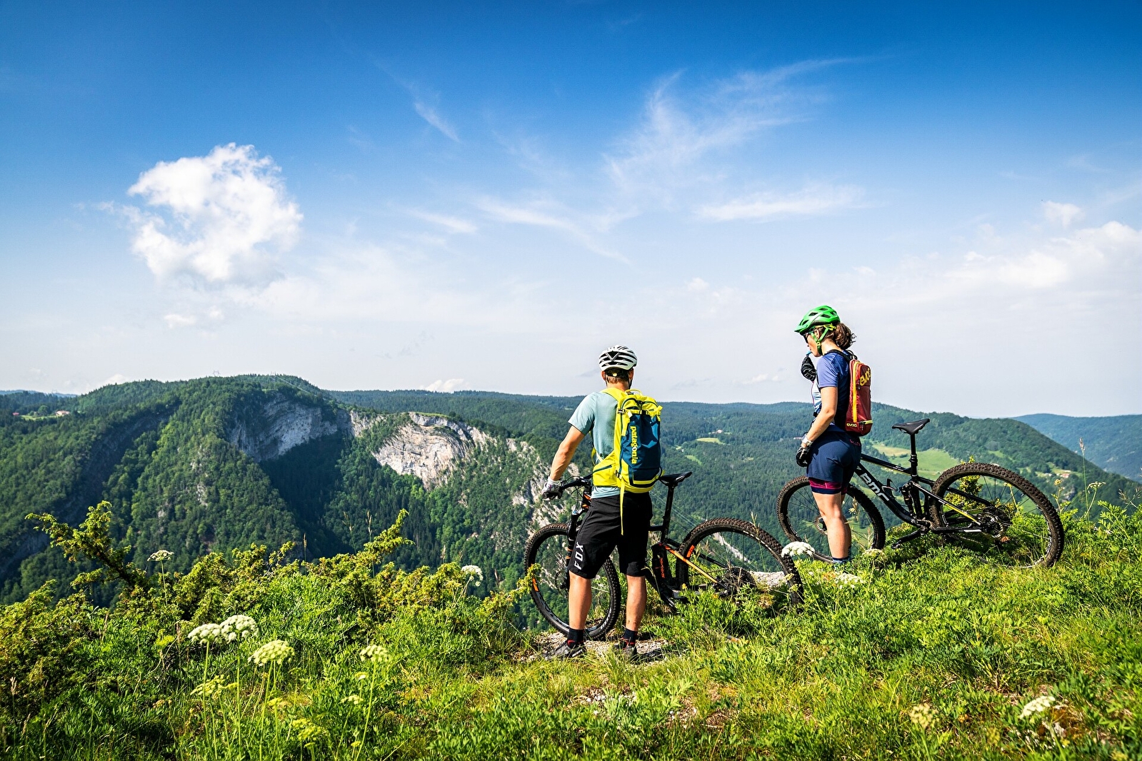 En 2021, l’Échappée Jurassienne se décline pour proposer une version VTT de son itinéraire emblématique. Dorénavant, les amateurs d’itinérance à VTT pourront eux aussi profiter des incroyables paysages, des sites naturels, des panoramas et des sites culturels qu’offre l’Échappée Jurassienne. Mais au-delà de la découverte des grands sites du Jura, c’est une aventure humaine d’une incroyable richesse et un périple au plus proche d’une nature préservée et diversifiée qui attend les vététistes. L’Échappée Jurassienne à VTT est une invitation à la déconnexion, au dépassement de soi et à une parenthèse nature hors du temps.