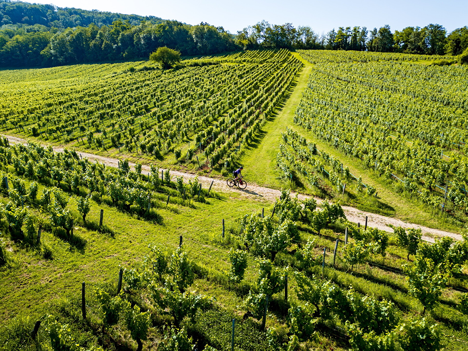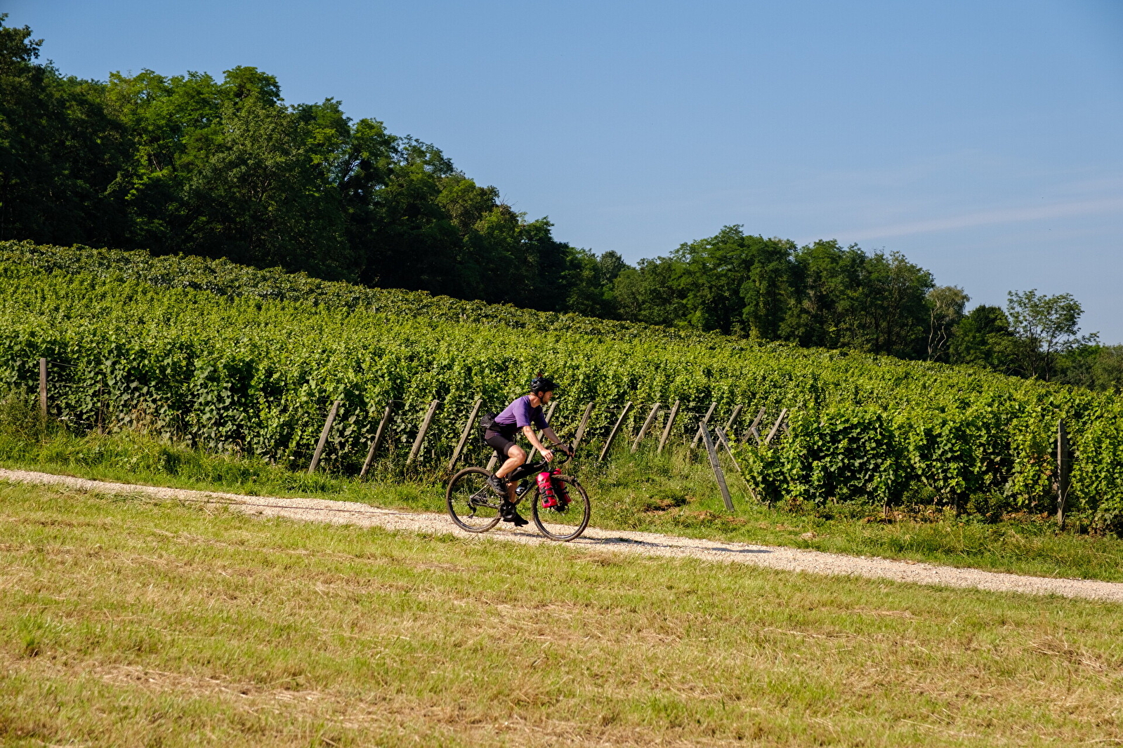 Et si vous sortiez du tracé classique ? C’est ce que vous propose cette option gravel de l’étape n°3 du Tour du Jura Vélo Loisirs entre Aiglepierre et les Arsures (3 km) puis entre Arbois et Poligny (18 km). Après avoir suivi le tracé initial entre Port-Lesney et Arbois vous emprunterez des petites routes en alternance avec des chemins non-bitumés entre les vignes vous invitant à l’aventure. Le gravel se développe, devient phénomène, et le vignoble jurassien est particulièrement adapté à cette découverte. Et si le voyage commençait au détour d’un sentier ? Téléchargez la trace GPX et suivez votre esprit gravel.Parcours à emprunter avec un vélo adapté aux chemins non-bitumés / Itinéraire gravel avec un dénivelé positif supérieur au tracé initial