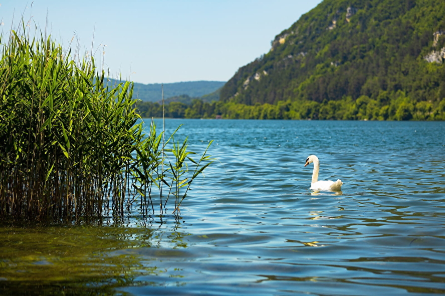 Cygne sur la lac de Nantua paisible et sauvage