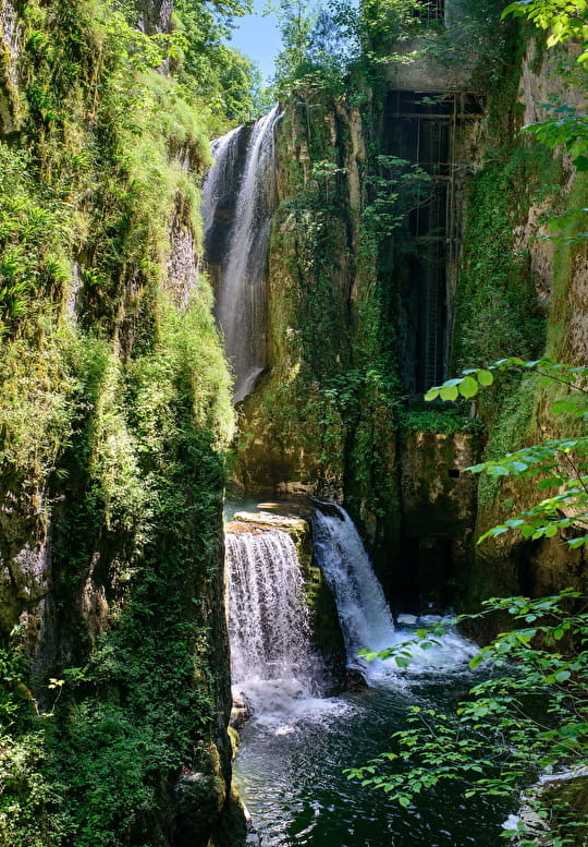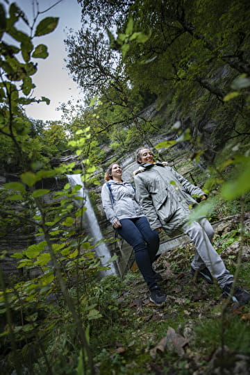 Empruntez la Via Rhôna, et partez pour une demi-heure de balade à pied ou à vélo à travers la forêt sauvage des Montagnes du Jura avant de découvrir cette magnifique cascade.
