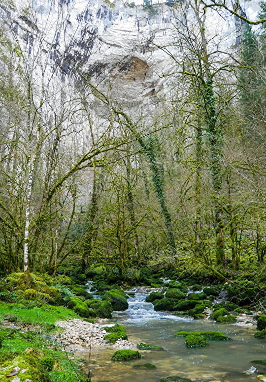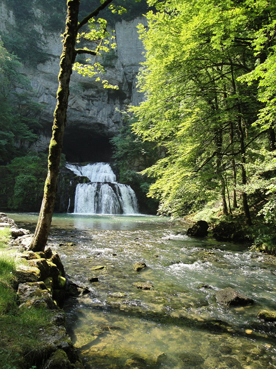 Celle qu'on appelle la source du Lison est surtout une impressionnante cascade sortant d'une grotte surmontée d'une immense paroi rocheuse.