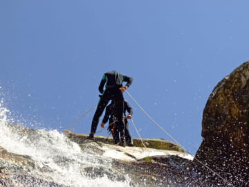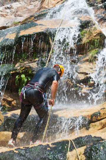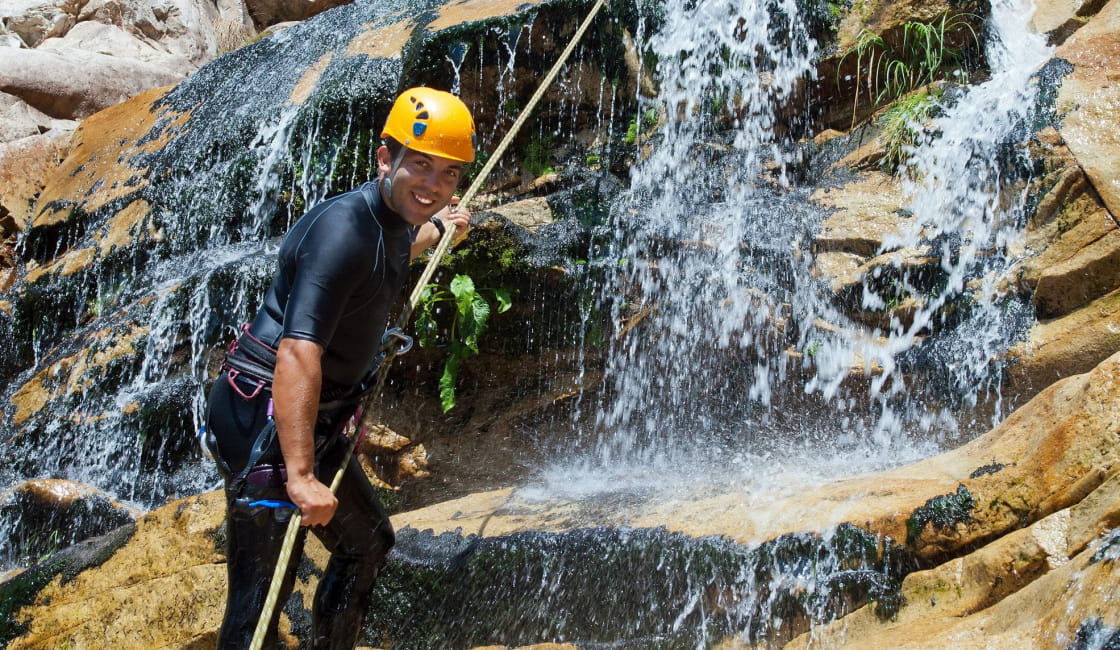 On enfile sa combinaison néoprène, son casque et son baudrier et en avant l’aventure ! La balade à pied dans le lit de la rivière prend vite un tour sportif et enchaîne glissades, cascades, sauts et descentes en rappel.