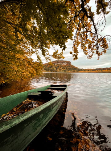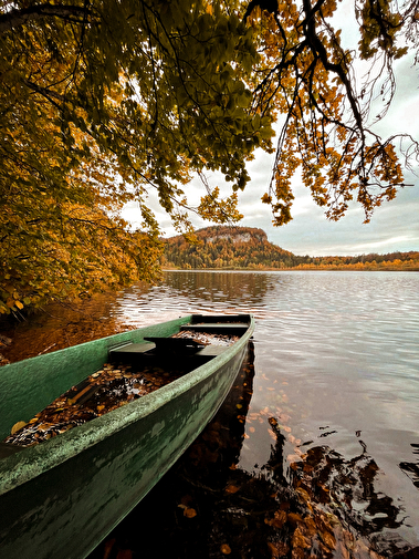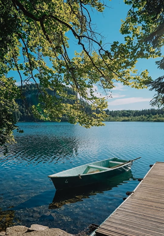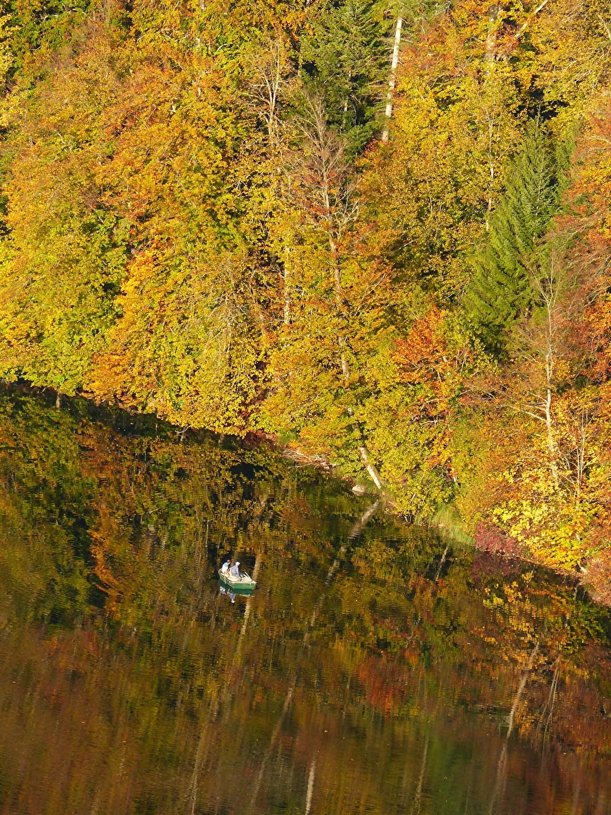 Lors de votre balade vous croiserez sûrement des barques (non motorisées !) de pêcheur. En effet les eaux profondes du lac de Bonlieu sont très poissonneuses.