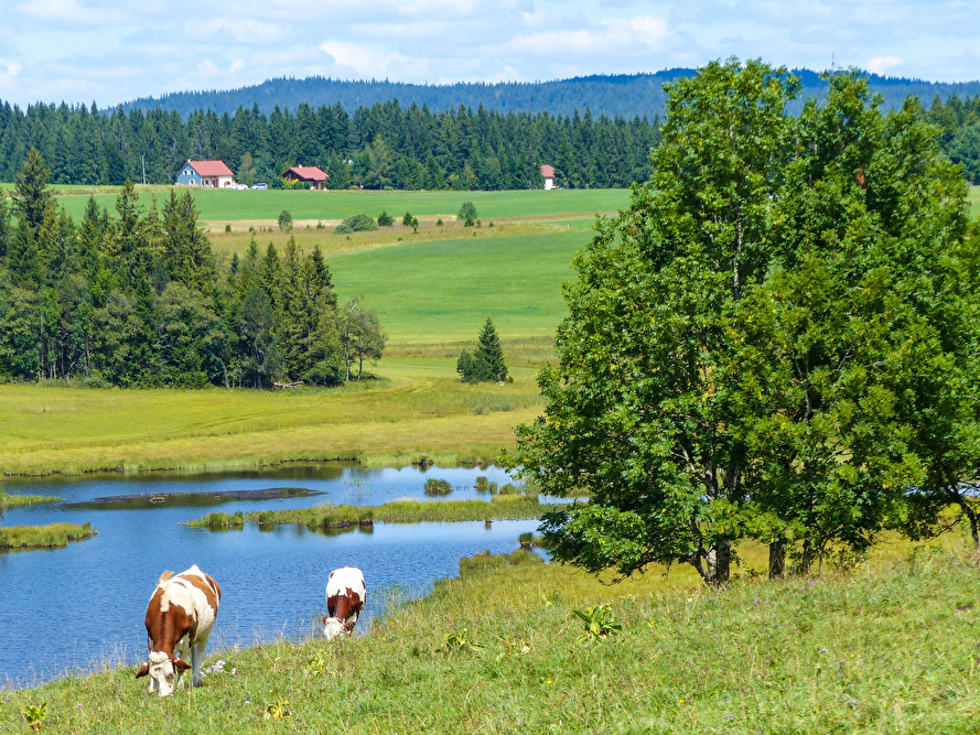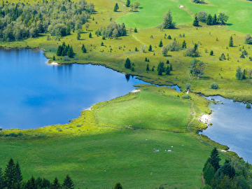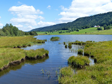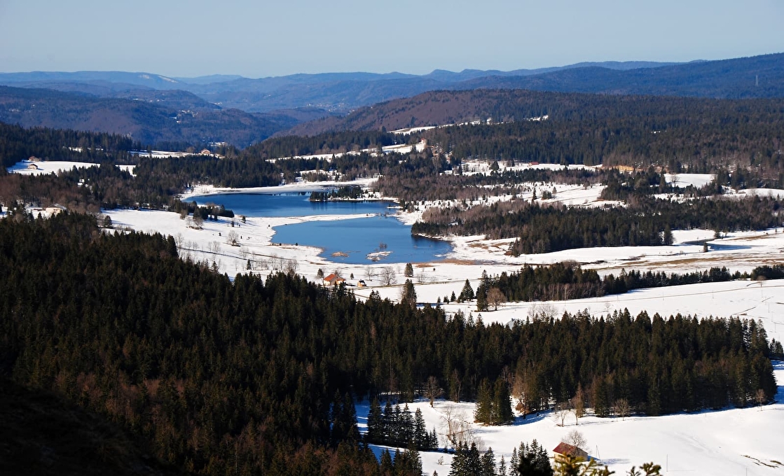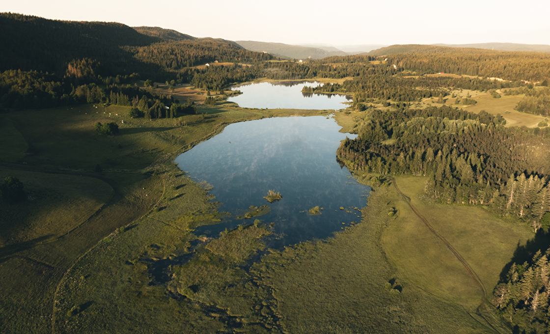 À cheval entre le Jura et le Doubs, les lacs de Bellefontaine et des Mortes offrent un paysage emblématique des Montagnes du Jura. Entourés de tourbières et de zones humides d’altitude, ces lacs de plateau abritent une biodiversité remarquable, dont une végétation boréo-arctique rare.