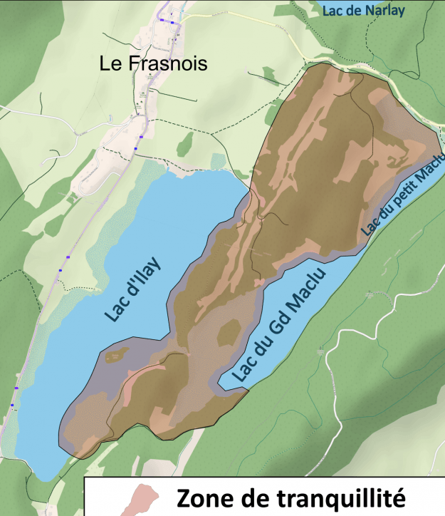 Elle concerne la zone entre les lacs d’Ilay, du Petit et du Grand Maclu, incluant également l’ile de la Motte et les zones de rivage afin de limiter les impacts sur les paysages, la ressource en eau, la biodiversité et de la qualité du cadre de vie.