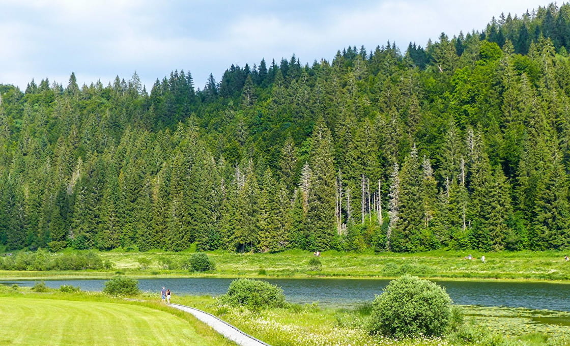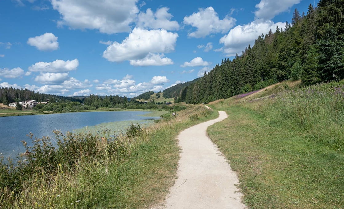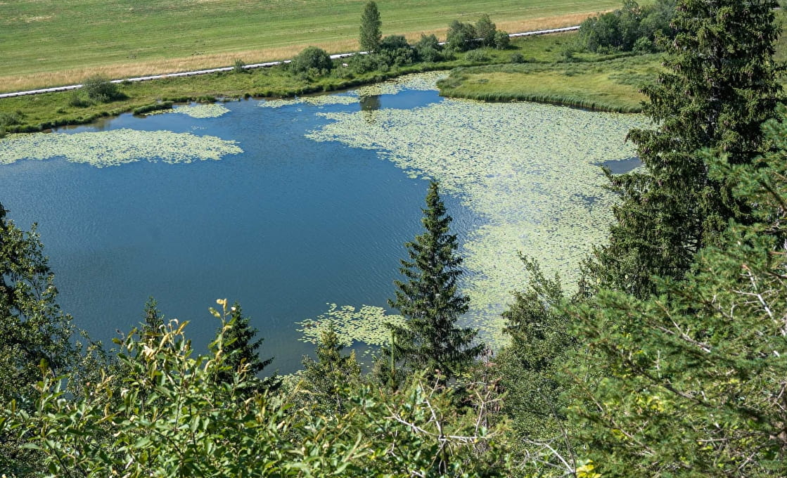 La particularité du lac de Lamoura ? Il est au coeur d'un écosystème fragile composé de tourbières. La faune et la flore de ces zones humides sont tout simplement exceptionnelles. C'est pourquoi le une partie du sentier qui en fait le tour est fait de platelage en bois installées au dessus de ces milieux fragiles afin de ne pas les dégrader.