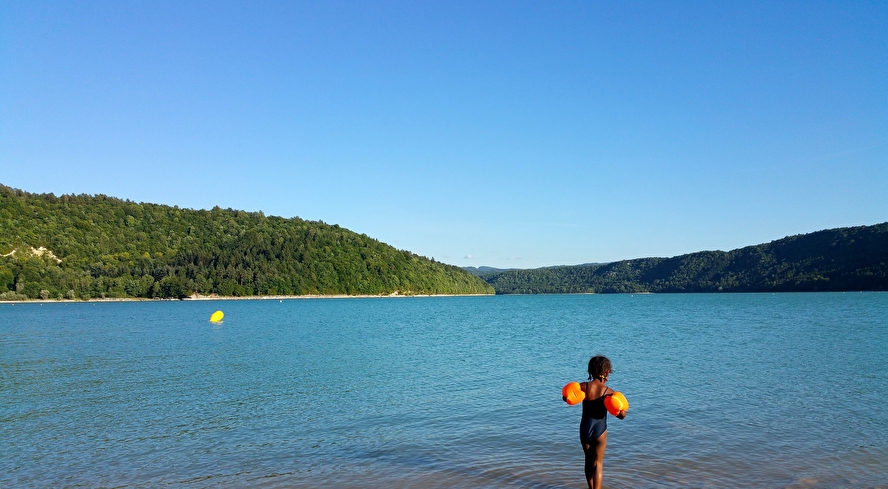 Des plages de sable et de pelouse ombragées et surveillées en été où il est possible de pique-niquer ! En plus les aux du lac peuvent facilement atteindre les 25° en été ! Comme quoi, lac du Jura ne rime pas forcément avec glagla.