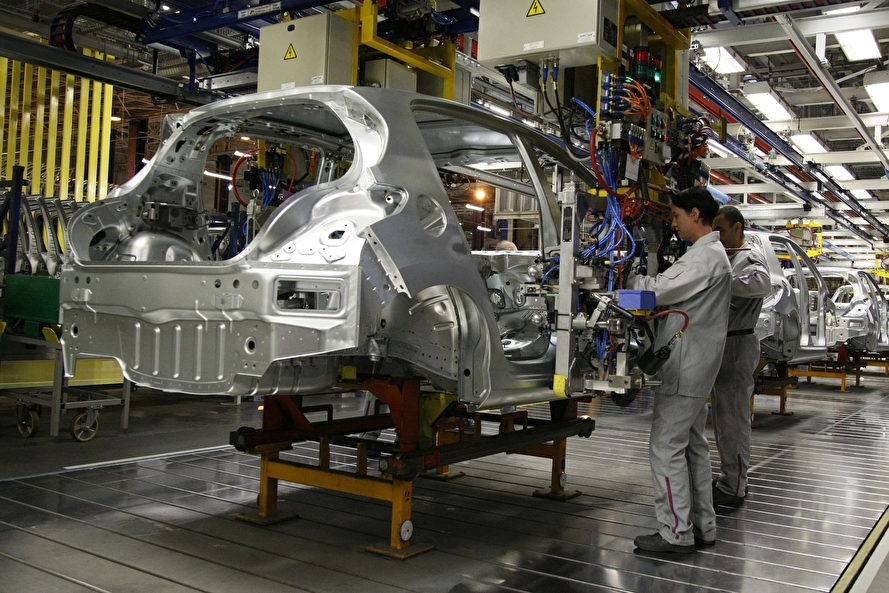 Atelier de ferrage : controle et finitions de la caisse en blanc .