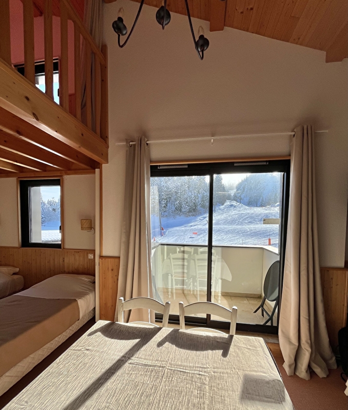 Depuis le balcon, laissez-vous séduire par une superbe vue sur les pistes, été comme hiver. Les amateurs de glisse apprécieront le casier à skis privé. La situation idéale du logement permet de profiter facilement de nombreuses activités accessibles à pied : randonnées, luge sur rails, accrobranche, mini-golf…