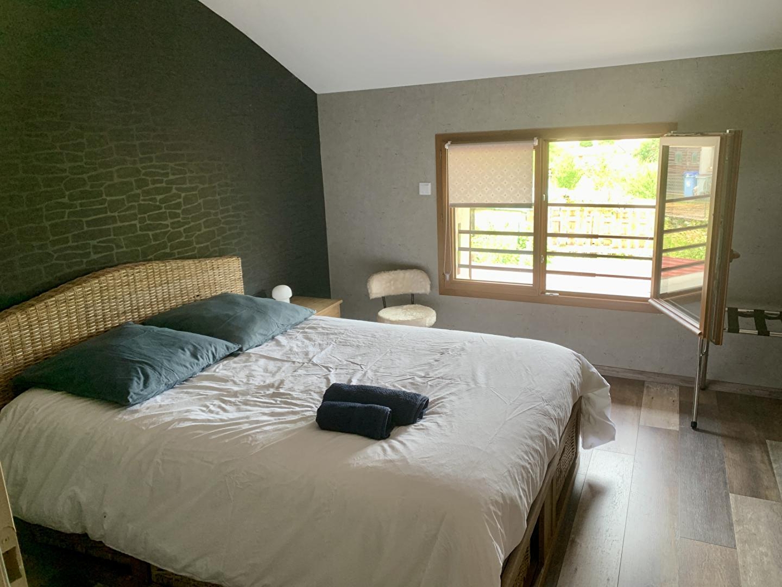 A proximité immédiate du lac de Vouglans, cette maison de village mitoyenne vous permettra de découvrir le Jura et la région des lacs. Elle se compose d'un coin salon avec TV, d'une cuisine toute équipée offrant un accès direct à la terrasse, d'une salle d'eau accessible PMR avec douche et WC. A l'étage, 3 chambres : une avec lit double 140*190, la seconde avec lit double 160*200 et la dernière avec 2 lits simples 80*200 Côté extérieur, vous pourrez profiter d'une terrasse avec coin bar, salon de jardin et barbecue. Idéalement situé pour la randonnée et la découverte de la région des lacs.