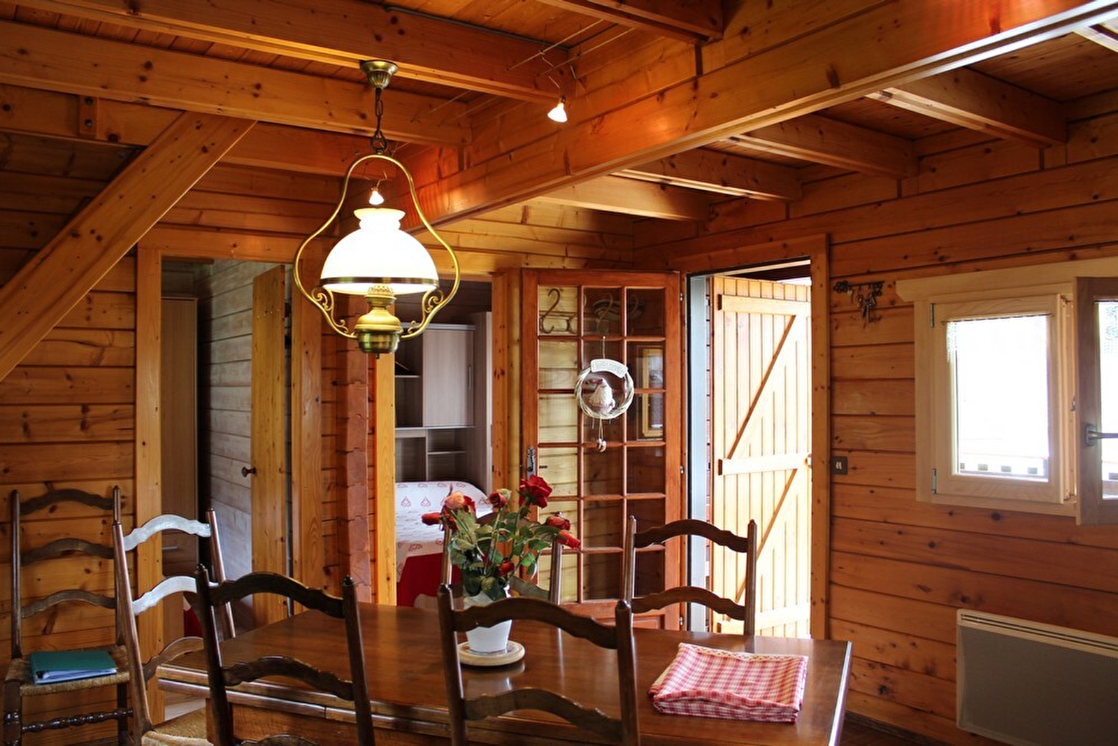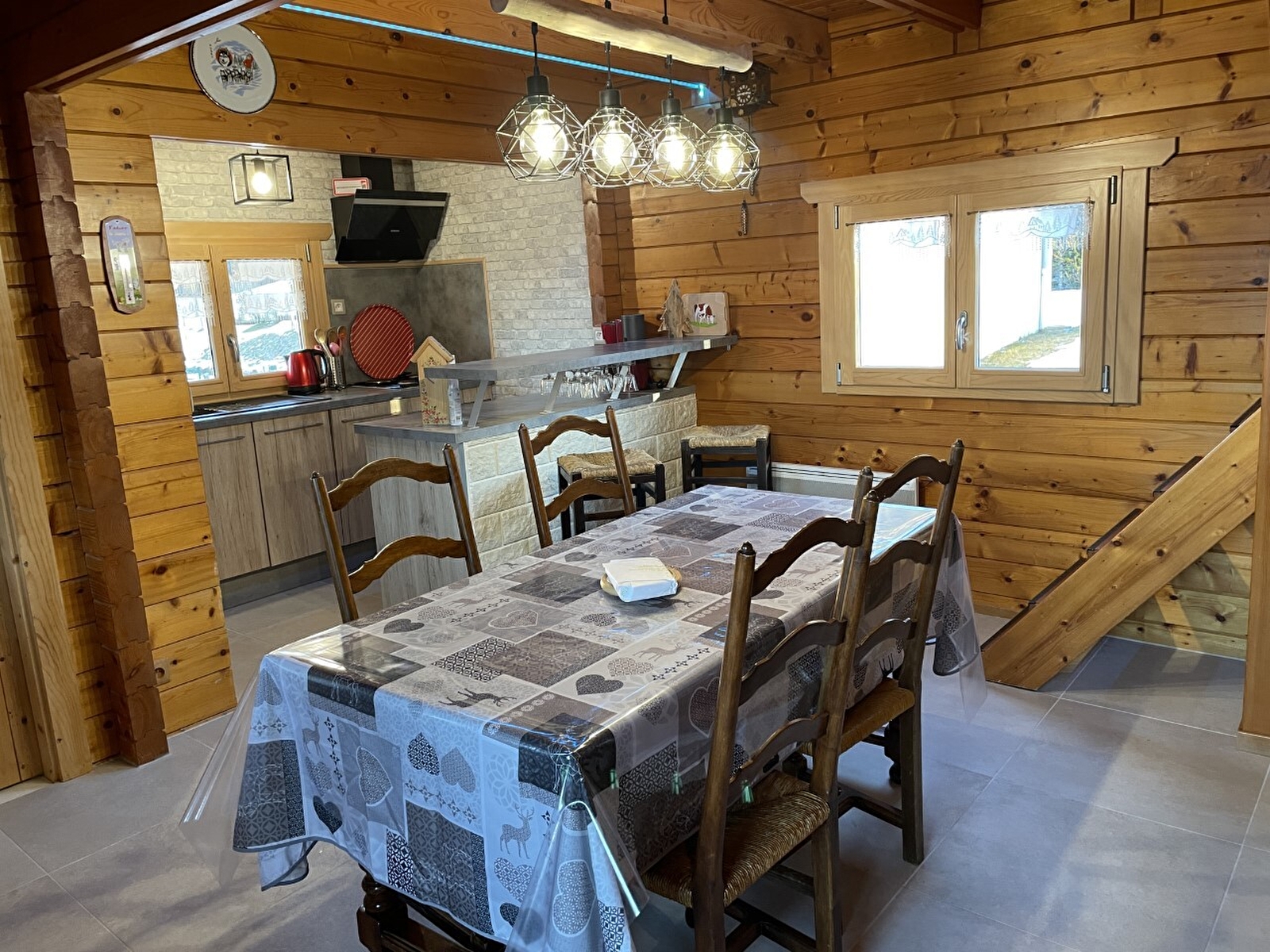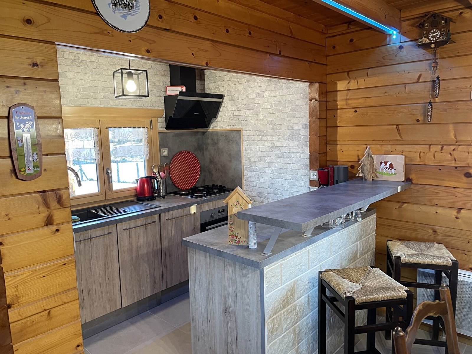 Chalet bois chaleureux et convivial dans un environnement calme. Le rez de chaussée est équipé d'un coin cuisine ouvert sur le séjour, deux chambres avec chacune un 1 lit 2 places, une salle de bain avec WC et douche. A l'étage : salon avec mezzanine + 1 coin nuit avec un lit double et un lit simple, petit balcon. Terrain attenant non clos, Local à ski, vélos..., salon de jardin, barbecue. Idéal pour les amoureux de la nature et de la pêche : rivières de 1ère catégorie (truites) à 500 m du gîte. Attraits touristiques : Gorges de la Langouette, cascade de la Billaude, Gorges, chutes et pertes de l'Ain à voir absolument !