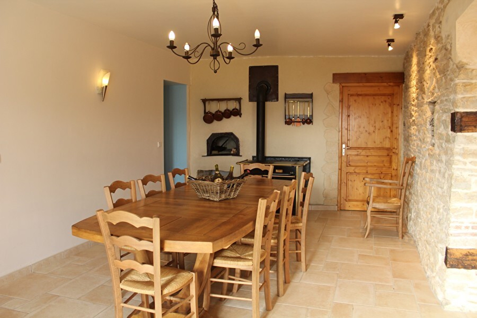 Gîte situé à l'entrée d'un village vigneron à moins de 5 km de château-chalon, entouré par les vignes et avec vue dégagée. Au cœur de l'appellation château-chalon et des AOC du Jura, le propriétaire aura le plaisir de vous faire découvrir et déguster les vins de son domaine. A découvrir ! en profitant de la vue sur le vignoble et sur château-chalon depuis la terrasse. Le gîte se compose d'une grande salle à manger ouverte sur la cuisine entièrement équipée, d'un salon indépendant ( 2 canapés convertible), salle d'eau (douche à l'italienne), wc indépendants. A l'étage : une vaste salle de bain (baignoire, table et matelas à langer), wc indépendants, chambre 1 : 1 lit en 160x200, chambre 2 : 1 lit en 160x200 et 1 lit gigogne modulable en 80x200 ou 160X200. Grande terrasse close avec vue panoramique, salon de jardin et barbecue. Jardin arboré attenant à votre disposition (non clos). Sur demande : local - garage pour motos, vélos, poussette,....