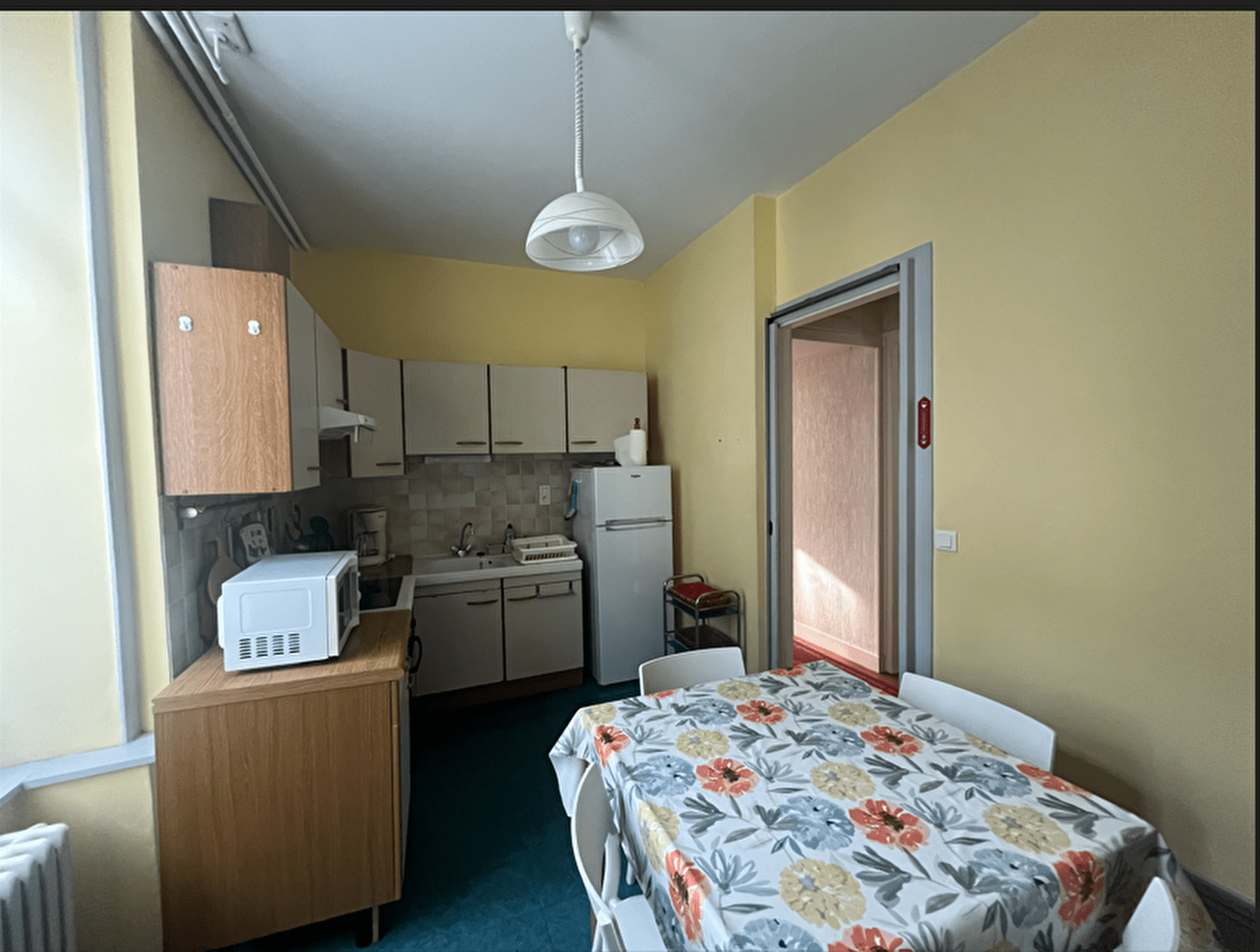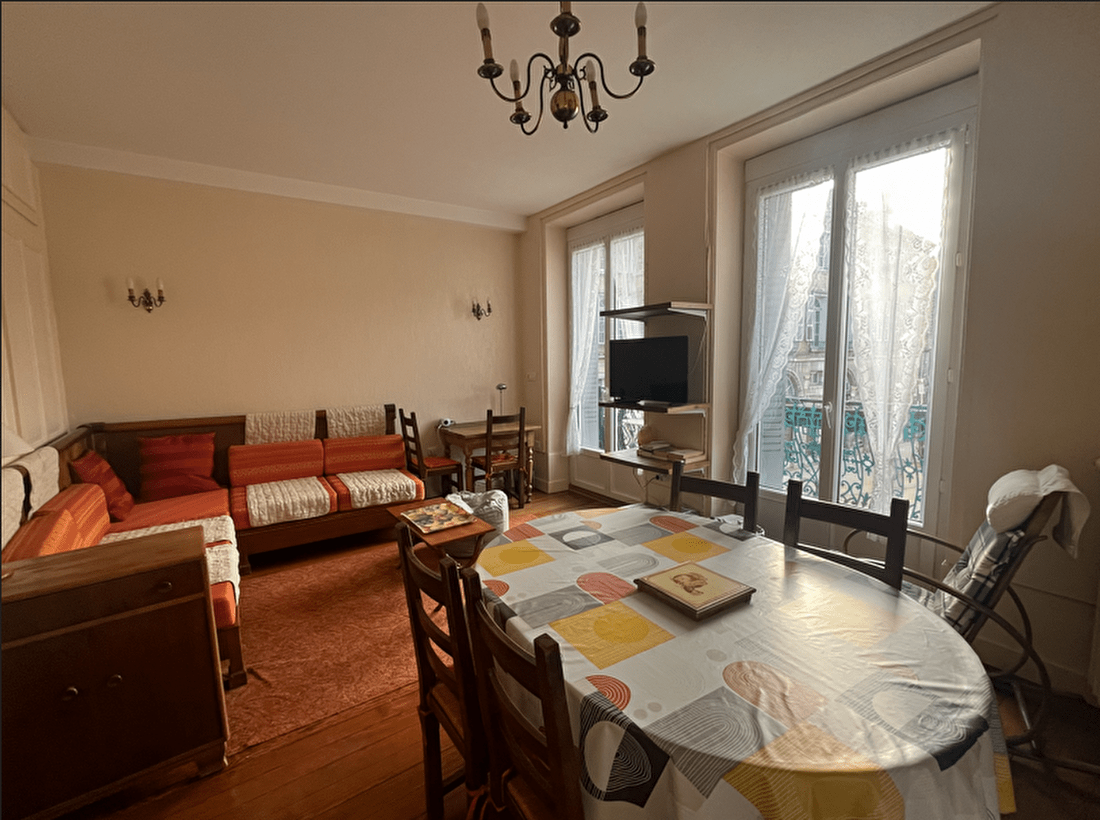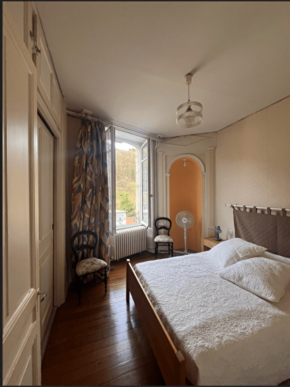 Ce logement est situé au centre-ville dans un immeuble ancien avec entrée sécurisée, à proximité d’un parking gratuit, de commerces (boulangerie, grande surface, pharmacie à 500 m) et à 400 m des thermes.