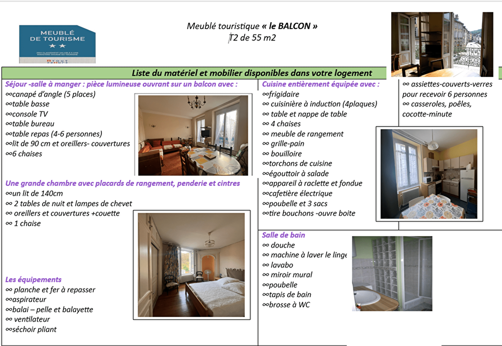 Ce meublé de 55 m2 tout équipé, proche des thermes, contribuera à la réussite de votre séjour à Salins les Bains.