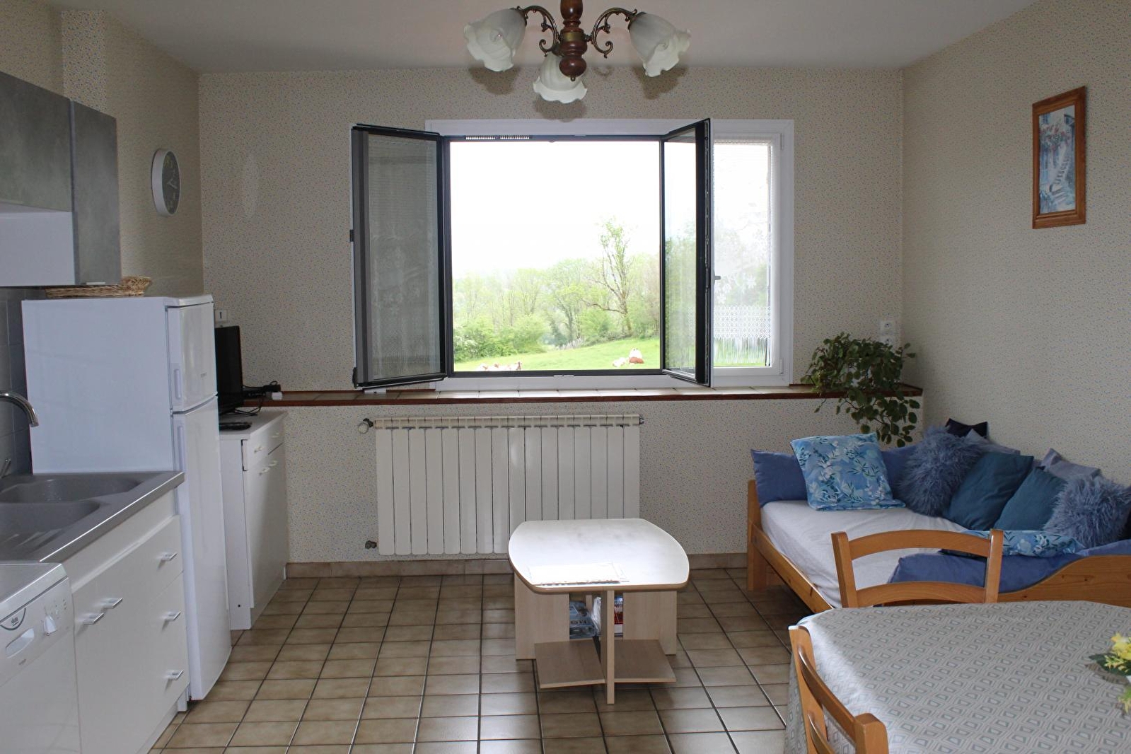 Logement indépendant à l'étage avec sa propre entrée, situé dans la maison du propriétaire, mitoyenne d'un côté par un garage voiture. Séjour salon (téléviseur écran plat câblé HDMI), canapé-lit 1 place, coin cuisine, salle de bains, wc indépendant, 2 chambres avec chacune 1 lit 2 places. Sur place vous trouverez l'équipement complet pour 2 bébés à disposition, cour, terrain de boules, grand terrain semi-clos (3000 m²), salon de jardin, barbecue. Chauffage central et électrique. Toutes charges comprises. Abri de jardin ou abri voiture. Canoé-kayak, pêche et baignade à 500m. Ski de fond à 20 km. Lacs à proximité. Accueil gourmand. Internet gratuit sur demande. Prise Green'up pour recharger véhicule électrique. (Service payant).