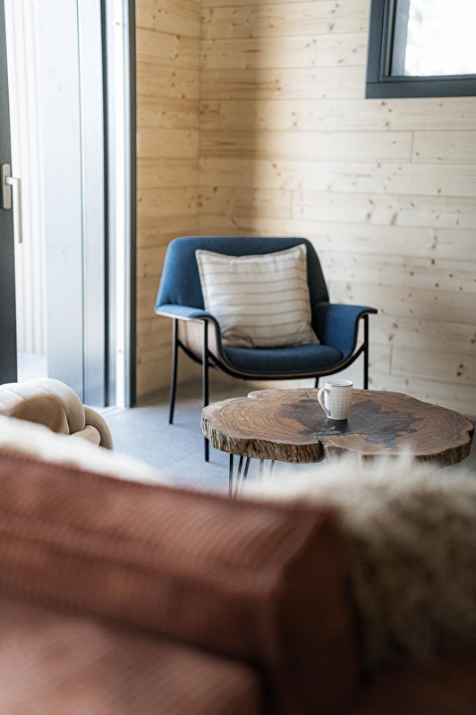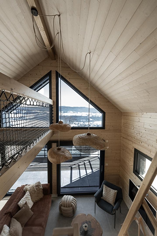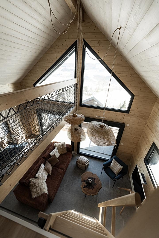 Un projet ambitieux et un propriétaire avide de défi, une addition réussie qui a donné naissance aux chalets Lynx Mountain : le Canada et le Boréal. Cyril, passionné de nature et de montagne a créé un gîte éco-friendly (murs en laine de cotons, luminaires en cartons recyclés, électroménager classe A, peinture écolabel...), respectueux de l'environnement et haut de gamme. Ce chalet scandinave, décoré dans un mélange de tons bleu et terracotta vous fera vivre une expérience unique et passer des vacances inoubliables. La pièce de vie est composée d'une cuisine toute équipée et d'un coin salon avec un bow window aménagé avec de douillets coussins pour se prélasser ou s'adonner à la lecture. Vous ne vous lasserez pas d'admirer la vue imprenable et apaisante sur la forêt du Risoux. Une mezzanine avec 3 lits simples qui sera plébiscitée par les plus jeunes, et peut-être même les plus grands et un filet suspendu pour prendre de la hauteur! Une seconde chambre avec 1 lit king-size (180*200), une salle d'eau avec une grande douche et un WC indépendant. Une salle de jeux commune aux chalets Canada et Boréal vous permettra de passer des moments conviviaux et de vous défier à la PS5. Côté extérieur, une magnifique terrasse en bois équipée d'un salon de jardin, d'un barbecue et de chaises longues ainsi que d'un spa aussi appréciable en été qu'en hiver. Alors n'attendez plus et venez vivre l'expérience Lynx Mountain