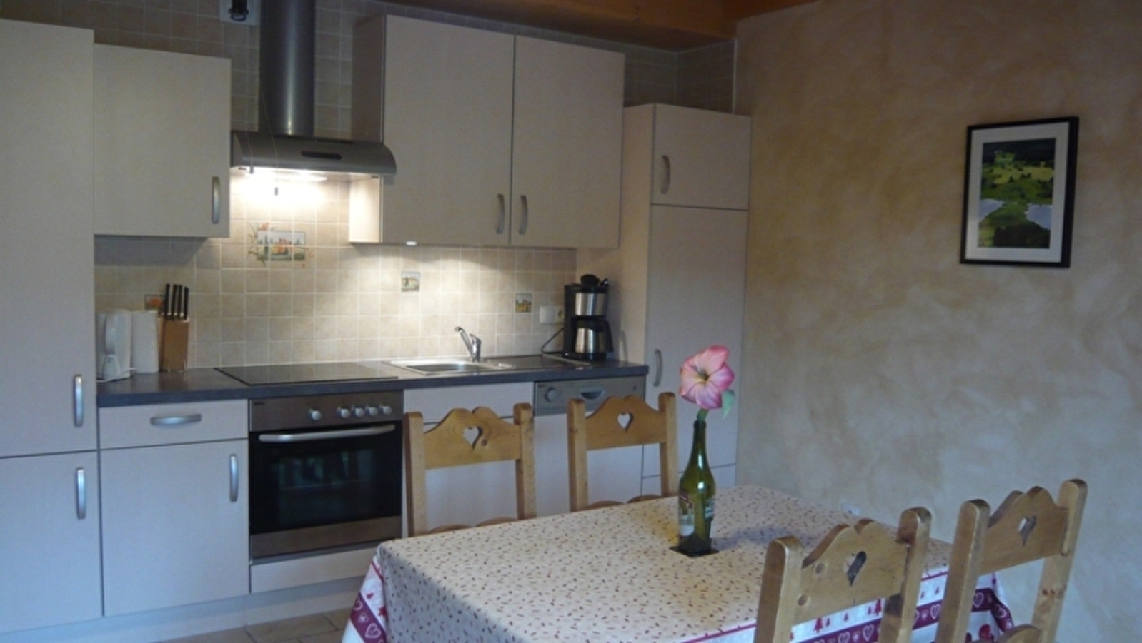 Au coeur du village, ancienne ferme entièrement rénovée composée de plusieurs gîtes. Au RDC, local à skis ou à vélos. A l'étage, belle cuisine équipée ouverte sur séjour-salon, CH1: 1 lit 2 pl, CH2: 2 lits 1 pl, salle d'eau avec douche (sèche-cheveux), wc indépendant. Balcon offrant une jolie vue sur les pistes. Terrain attenant non clos, salon de jardin et barbecue. Interphone et digicode. ACCES WIFI SECURISE GRATUIT. Tarif possible pour 2 personnes : se renseigner auprès des propriétaires. Parking privé sur place et volets dans les chambres.