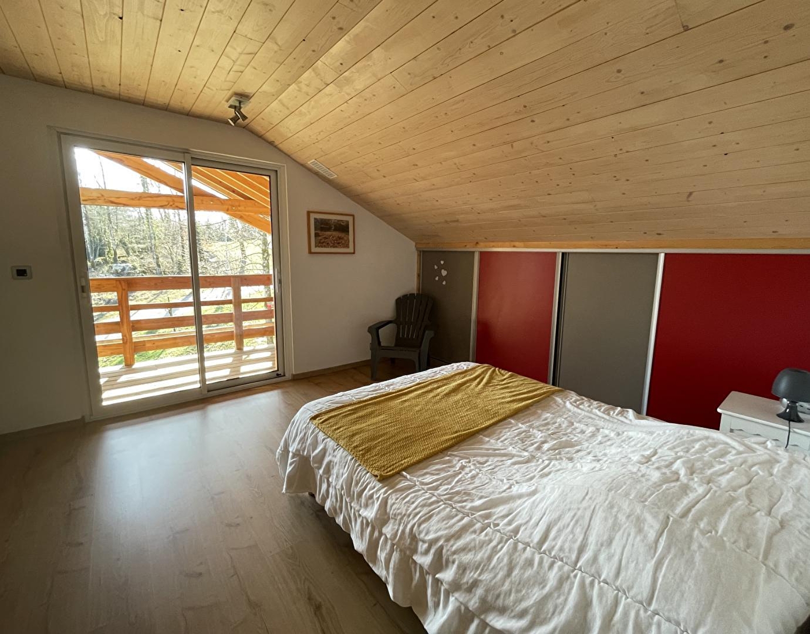 Le Chalet "New Hampshire" est le rêve familial d'Anne-Louise : un lieu pour se retrouver et créer de nouveaux souvenirs, et un lieu à partager. Originaire du New Hampshire aux USA, la propriétaire est tombée amoureuse de la région des lacs et petites montagnes qui lui rappellent chez elle. Dans ce chalet moderne et eco-friendly se compose d'une pièce de vie avec cuisine toute équipée, salon avec TV et poêle à bois, d'une chambre avec 1 lit double (140*190), d'une salle d'eau avec baignoire et douche à l'italienne et d'un WC indépendant. A l'étage une mezzanine avec un petit salon agrémenté d'une TV, de livres et de jeux de société, un coin bureau idéal pour le télétravail, 2 chambres avec chacune un lit double (140*190) et 1 chambre avec 1 lit double (140*190) et 2 lits superposés, une salle d'eau avec douche et un WC indépendant. Côté extérieur, vous pourrez profiter d'une belle terrasse agrémentée d'un salon de jardin et d'un barbecue.Un garage vous permettra de mettre à l'abri vos vélos ou motos Idéalement situé pour les amoureux de randonnées cyclo, pédestre et équestre, vous pourrez également partir à la découverte des lacs et cascades et vous rendre à Bourg-en-Bresse en 30 minutes pour visiter le célèbre monastère royal de Brou. Vous pouvez trouver aussi un terrain pétanque sur place (communale mais juste derrière le chalet sur le chemin de terre). Tennis à 8km (Aromas). Il y a aussi des randonnées sur place, avec chemins balisés. A noter: le sous-sol est loué à l'année.