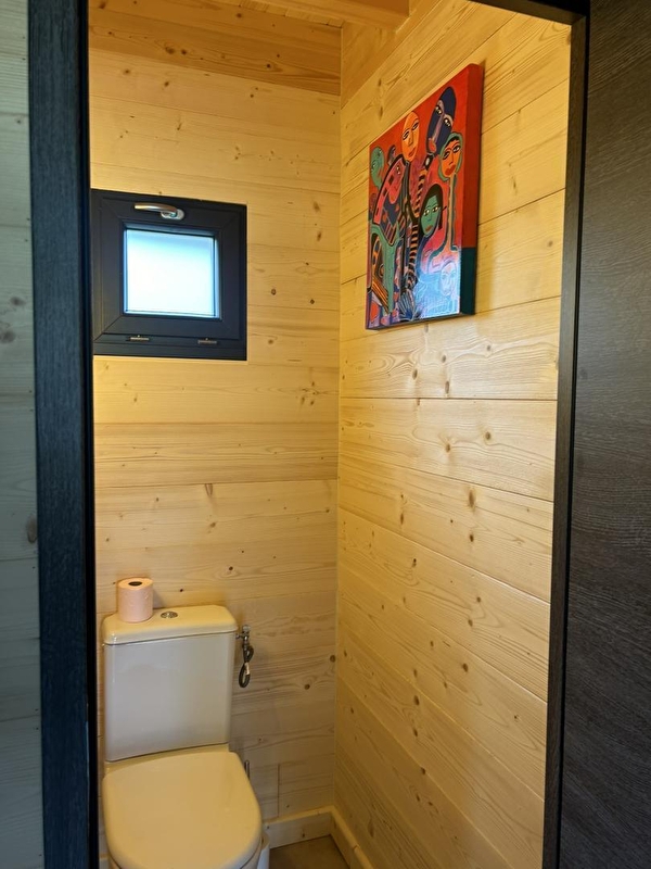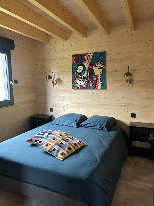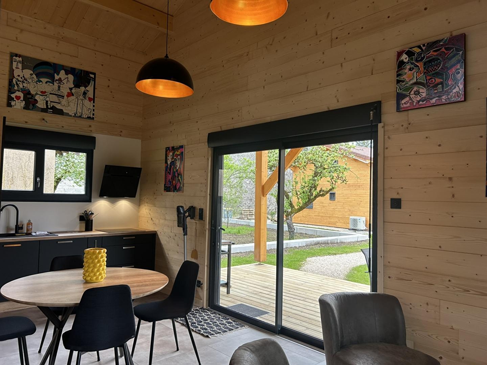 Ce petit chalet cosy, situé sur un terrain avec 2 autres chalets identiques saura vous séduire pour vos prochaines vacances dans le Jura. Il se compose d'une pièce de vie avec cuisine toute équipée, d'un coin salon avec TV, d'une chambre avec 1 lit double (160*200), d'une salle d'eau avec douche, d'un WC indépendant, d'une mezzanine avec un canapé convertible et d'une chambre mansardée avec 2 lit simples jumelables (80*200). Côté extérieur, vous pourrez profiter d'une terrasse couverte de 18 m² équipée d'un salon de jardin et d'une plancha. Idéalement situé, à 2 kms du lac de Chalain avec accès direct à la piste cyclable (Champagnole - Marigny-Doucier) Au moment de la réservation, un forfait ménage de 80 euros s'appliquera automatiquement.