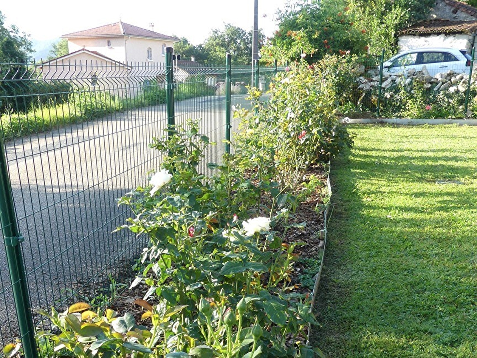Découvrez à l'extérieur une petite terrasse/balcon à l'étage et un jardin fleuri tout autour du chalet, avec à disposition, pour profiter des extérieurs, salon de jardin, banc, transats, et barbecue.