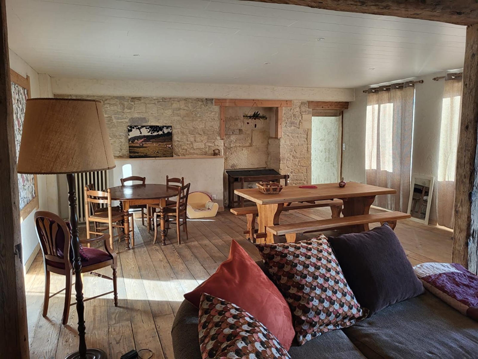 Situé au cœur d'un environnement calme et verdoyant, ce gîte indépendant vous accueille dans une maison de caractère alliant authenticité et confort. Au rez-de-chaussée, vous profiterez d'une cuisine entièrement équipée, d'une agréable pièce de vie comprenant salon avec canapé et TV et d'un coin salle à manger. Les matériaux naturels, pierre et bois, apportent une ambiance chaleureuse et conviviale. Une salle d'eau ainsi qu'un WC indépendant complètent ce niveau. À l'étage, le gîte dispose de trois chambres, offrant un espace nuit confortable pour toute la famille ou un séjour entre amis : 2 chambres avec chacune un lit double (140*190) et un lit simple (90*190) et une autre avec un lit double (160*200) ainsi qu'une seconde salle d'eau avec WC. Pour votre plus grand confort, les lits seront faits à votre arrivée. Côté extérieur, vous pourrez profiter d'un terrain clos, avec terrasse aménagée : salon de jardin, barbecue, transats. Garage pour motos et vélos, cour intérieure et porche pour voitures. Cette maison est idéale pour un séjour reposant, à la campagne, tout en étant proche des sites touristiques situés à proximité : la cité médiévale de Nozeroy, les pertes de l'Ain, la villa palladienne... nombreux circuits de randonnées pédestres et cyclo à quelques kilomètres du gîte Sans oublier bien sûr prendre le temps de déguster nos produits régionaux : comté, Morbier, Mont d'Or, saucisse de Morteau, Pontarlier, Absinthe...