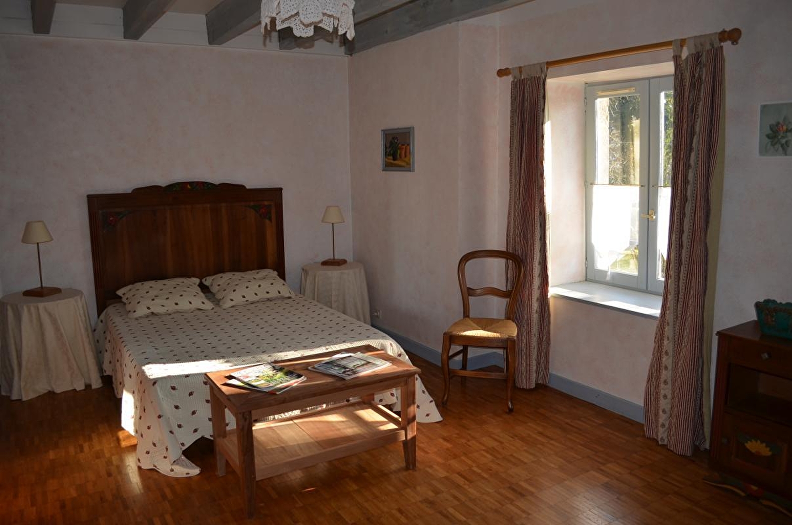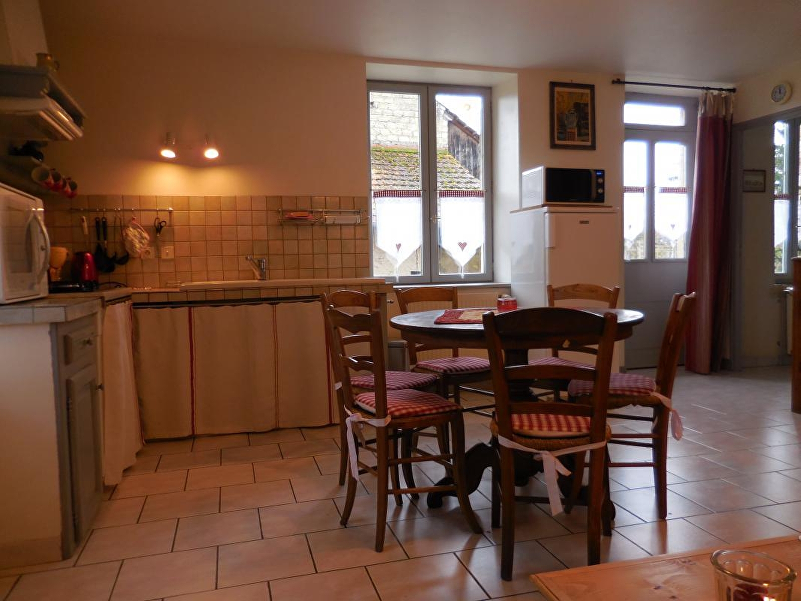 Le gîte se situe dans une partie d'une ancienne ferme rénovée. L'ambiance campargnarde qui s'en dégage cherche à recréer l'atmosphère des "Contes du Chat Perché" de Marcel Aymé. Cuisine intégrée toute équipée (congélateur), séjour, ch1: 1 lit 2 pl, ch2: 1 lit 2 pl et 1 lit 1 pl, 2 lits bébé, salle d'eau, terrain attenant semi- clos, cour, barbecue, salon de jardin. Vous pourrez "flaner" dans le magnifique jardin des propriétaires qui se feront une joie de vous le faire découvrir. Chauffage central. Toutes charges comprises été/hiver. Sur demande, en option, forfait ménage: 70€ et location de draps: 10€/paire. Connexion internet gratuite.