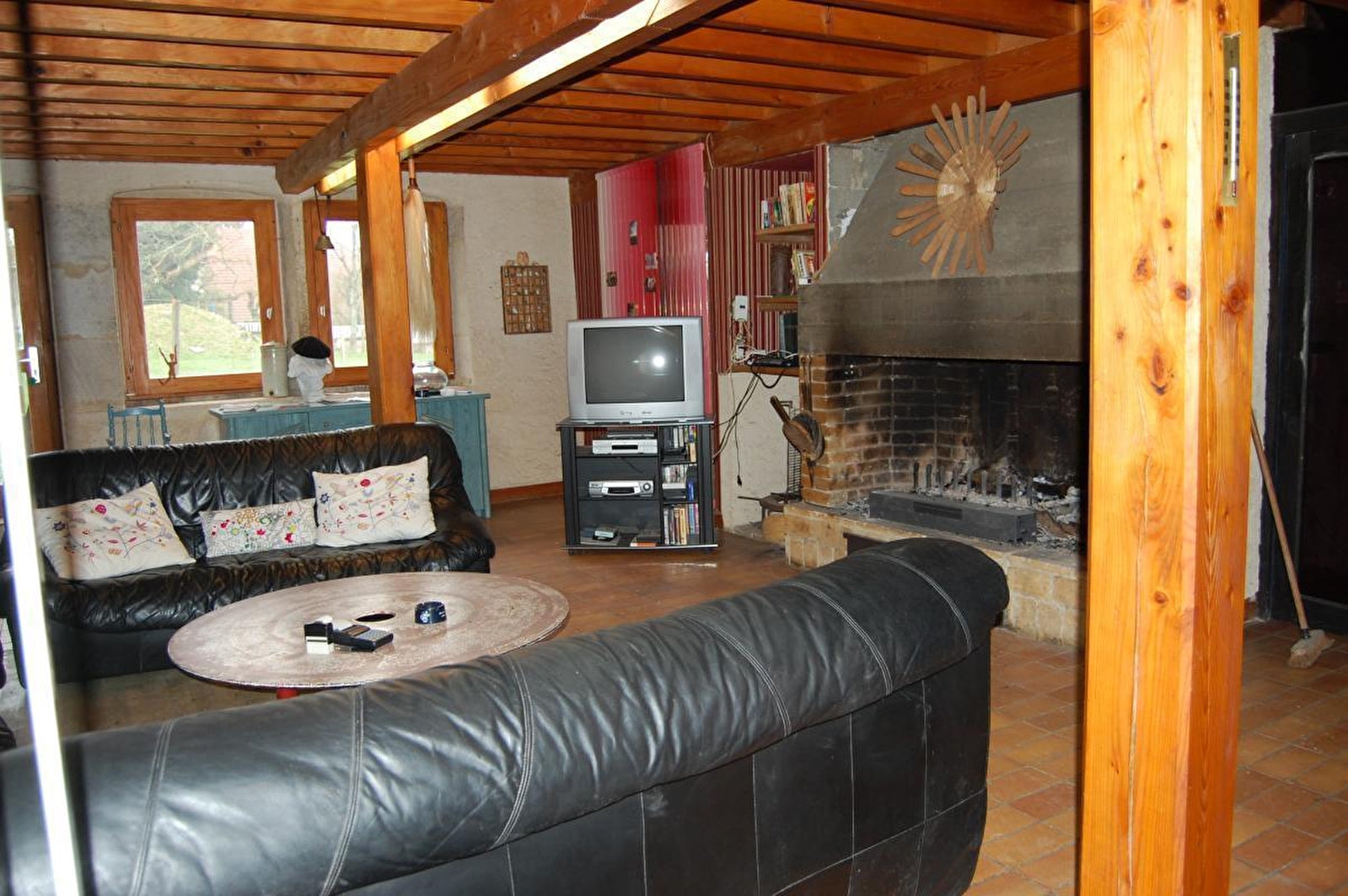 Maison mitoyenne dans un beau petit village proche de Dole. Au rez de chaussée : Cuisine, grand salon, cheminée, salle à manger avec billard, 2 wc, 2 salles d'eau (douche), véranda,sèche linge. A l'étage Ch1: 1 lit 2 pl et 1 lit 1 pl, Ch2: 1 lit 2 pl et 1 lit 1 pl, Ch3: 1 lit 2 pl (160), TV et lecteur dvd, Ch4: 1 lit 2 pl et 3 lits 1 pl, sdb (wc, baignoire). Terrasse attenant non clos, salon de jardin, barbecue. Animaux: 5 €/animal/jour et forfait ménage en supplément: 15 €.