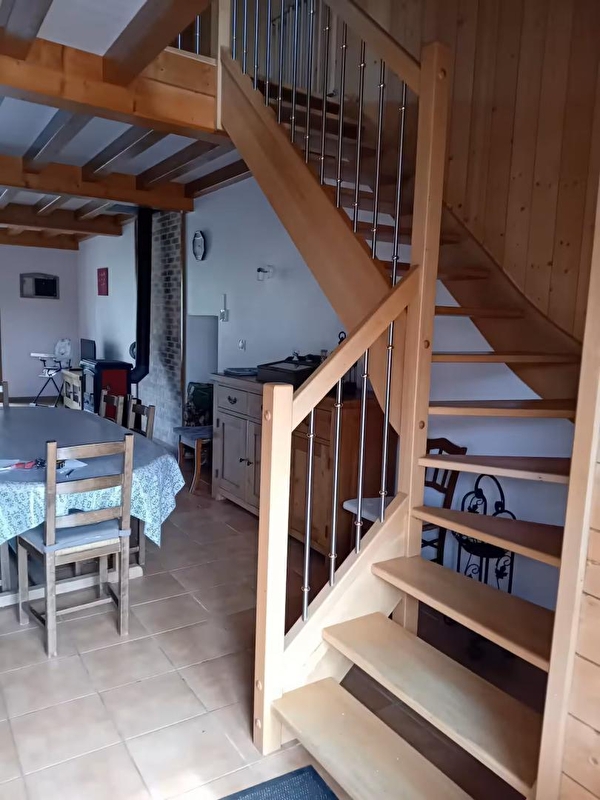 Cette maison mitoyenne a été entièrement rénovée par les propriétaires Liliane et Pascal. Située au cœur de la Petite Montagne, a 10 km d'Arinthod et 5 km de Saint Julien sur Suran. Si vous aimez le calme, la verdure et les belles balades ce gite sera l'endroit idéal pour vos prochaines vacances. Il se compose d'une grande pièce à vivre avec cuisine toute équipée, coin salon avec TV et poêle à granulés (fournis gratuitement), d'une salle d'eau avec douche et d'un WC indépendant. Au 1er étage, une mezzanine avec 1 clic-clac (pour 1 ou 2 personnes supplémentaires), 1 chambre avec 1 lit double (140*190), une salle d'eau avec douche et 1 WC indépendant, au 2ème étage, une chambre avec 1 lit double (140*190) et une chambre avec 2 lits simples (90*190). Côté extérieur, vous pourrez profiter d'une terrasse aménagée avec salon de jardin, transats et barbecue et d'un terrain de pétanque. Idéalement situé pour les amoureux de randonnées cyclo, pédestre et équestre. Vous pourrez également partir à la découverte des forets, des lacs et cascades et vous rendre en 40 mns à Lons-le-Saunier, ville thermale, pour visiter le musée de la Vache qui rit ou partir à la découverte de Bourg-en-Bresse pour visiter le célèbre monastère royal de Brou. Note : un forfait ménage obligatoire s’appliquera automatiquement au moment de la réservation.