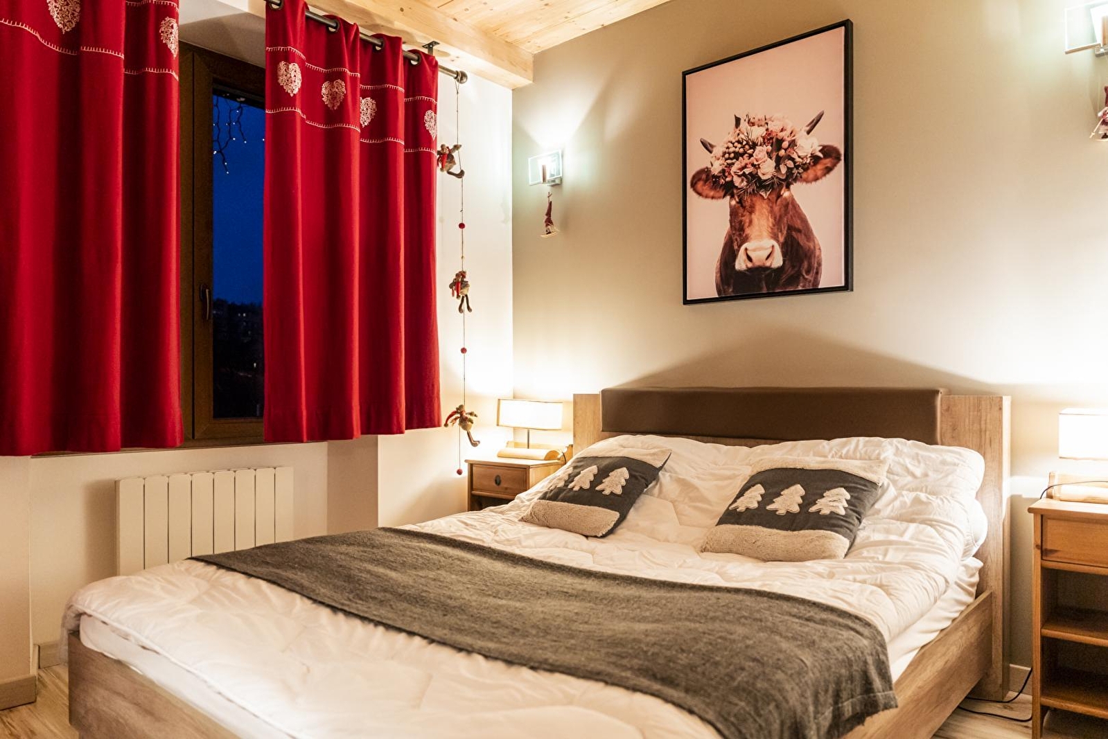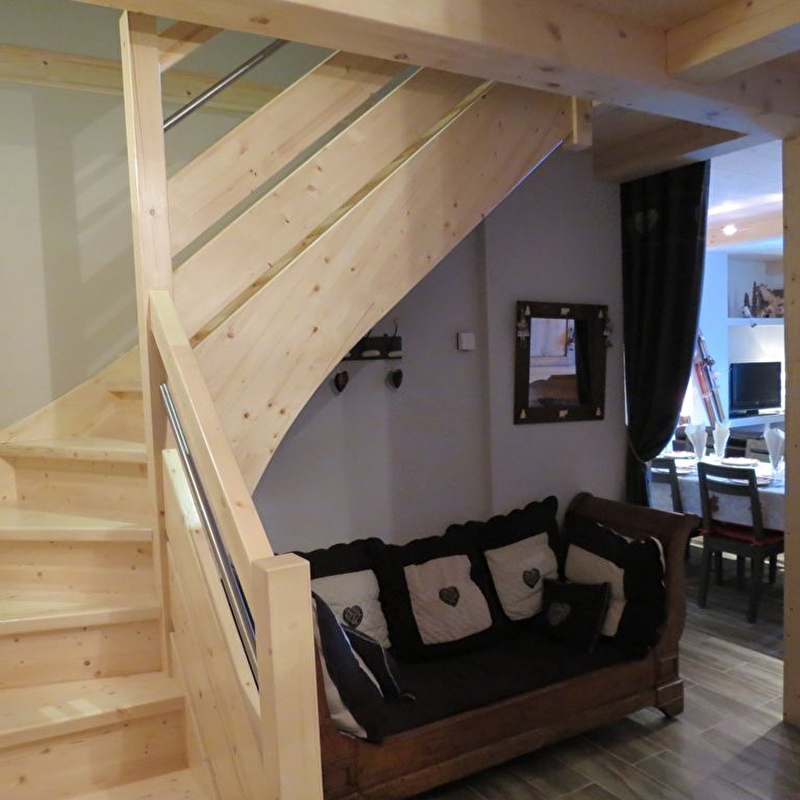 Laissez-vous charmer par ce duplex entièrement refait à neuf à l'ambiance montagnarde. Situé au 1er étage de la maison des propriétaires, il se compose d'une pièce à vivre chaleureuse avec cuisine toute équipée (dont appareil à fondue et à raclette), d'un salon, d'une salle d'eau, d'un WC séparé et d'une chambre. avec un lit double (160*200). Au 2ème étage, vous trouverez 2 autres chambres, équipée chacune d'un lit double (160*200) et d'un lit simple, une salle de bain avec WC. Terrasse avec salon de jardin, barbecue et nombreux jeux pour enfants : balançoire, cabane, vélos...