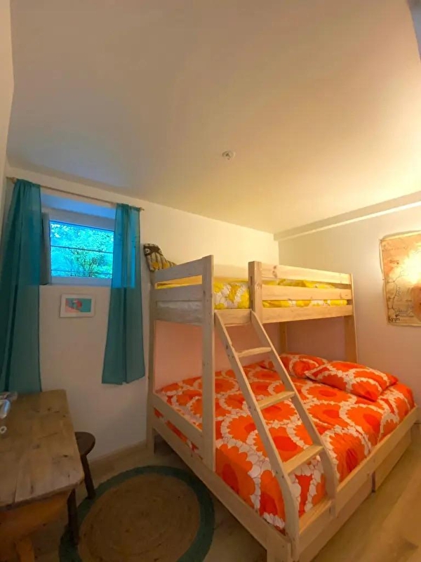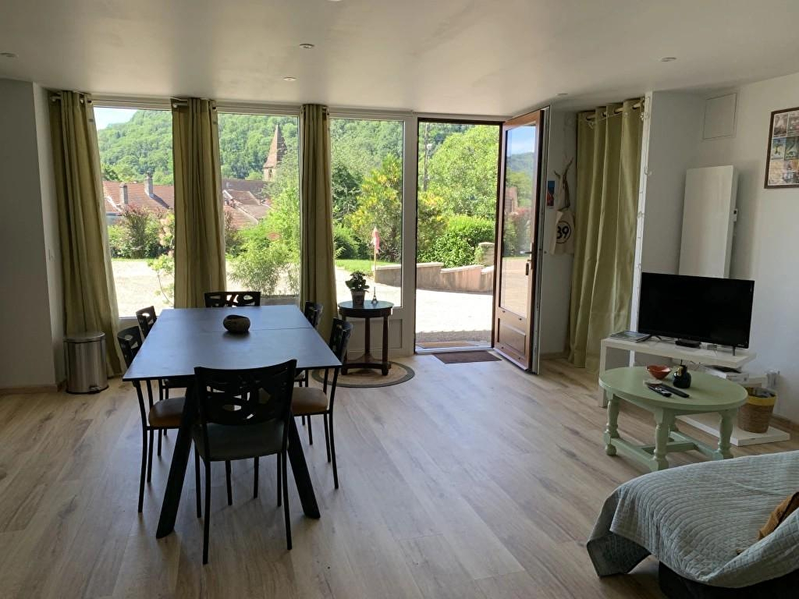 Envie d'une escapade à la découverte du Jura … ce gîte chaleureux et idéalement situé vous accueille au fil des 4 saisons pour une parenthèse nature et une multitude d'activités touristiques, sportives, viticoles, gastronomiques … Ce petit nid douillet, situé au rez-de-chaussée de la maison des propriétaires est accessible d'une façon évidente aux personnes à mobilité réduite et rempli d'attentions de « Tata et Tonton » dit les Tatons pour les familles, les petits bambins, les grands ados, les amis des amis, les amoureux de la nature…Il se compose d'une pièce de vie avec cuisine toute équipée, espace salle à manger et coin salon avec TV connectée (Netflix), d'une chambre avec 2 lits superposés (1 lit double 140*190 et à l'étage un lit simple 90*190), d'une chambre avec un lit double (160*200), d'une salle d'eau avec douche et d'un WC indépendant. Pour votre plus grand confort, les lits seront faits à votre arrivée et les serviettes de toilette sont fournies. Côté extérieur, vous pourrez profiter d'une terrasse avec salon de jardin, transats,hamac, plancha et barbecue. Possibilité d'accueillir une personne supplémentaire sur demande et en supplément. Note : un forfait ménage obligatoire s'appliquera automatiquement au moment de la réservation.