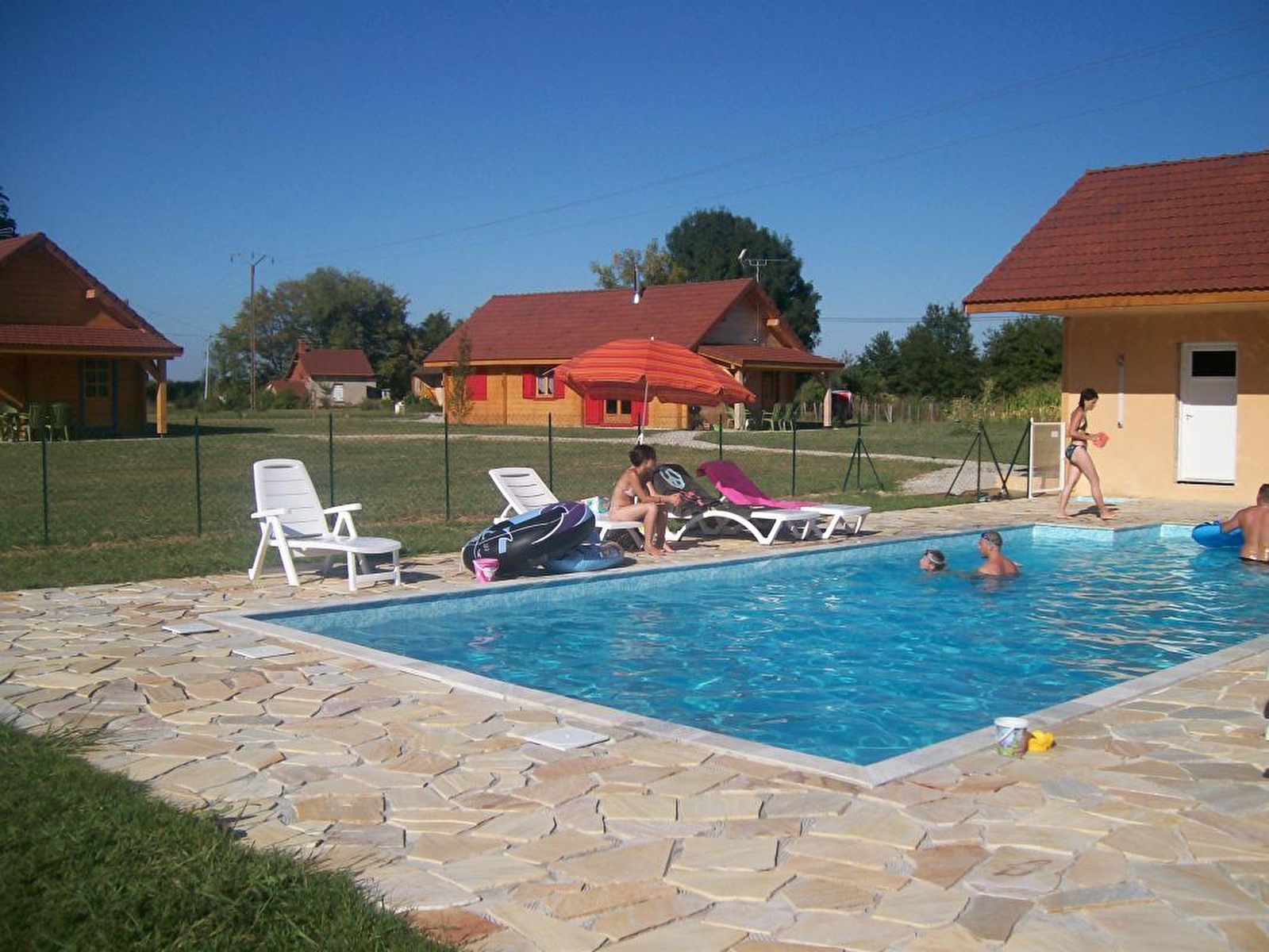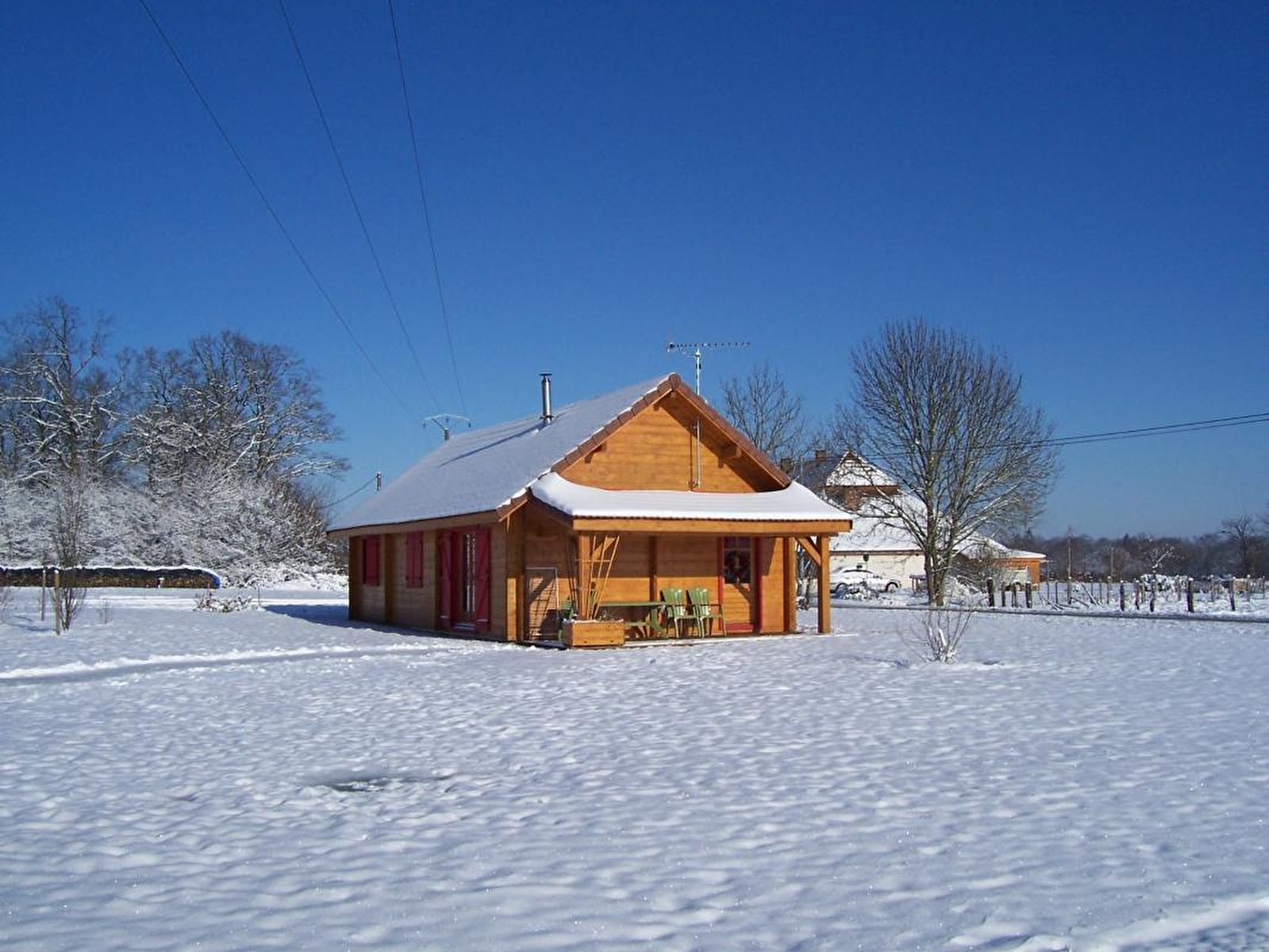 Au cœur de la Bresse jurassienne parsemée d'innombrables étangs où tout est prétexte à admirer la campagne environnante, le gîte est aménagé en pleine nature. Chalet indépendant, de plein pied, séjour-salon, coin cuisine équipé, congélateur, poêle à bois (bois fourni gratuitement), salle d'eau, WC indépendant, sèche-linge, ch1: 1 lit 2 pl, ch2: 2 lits 1 pl, ch3: 2 lits 1 pl, chauffage électrique, cour, terrasse couverte, salon de jardin, barbecue, terrain attenant non clos. Piscine commune avec un autre gîte. Les propriétaires ont également 4 chambres d'hôtes dans leur maison. Connexion internet gratuite. Tarif WE à voir avec propriétaire.