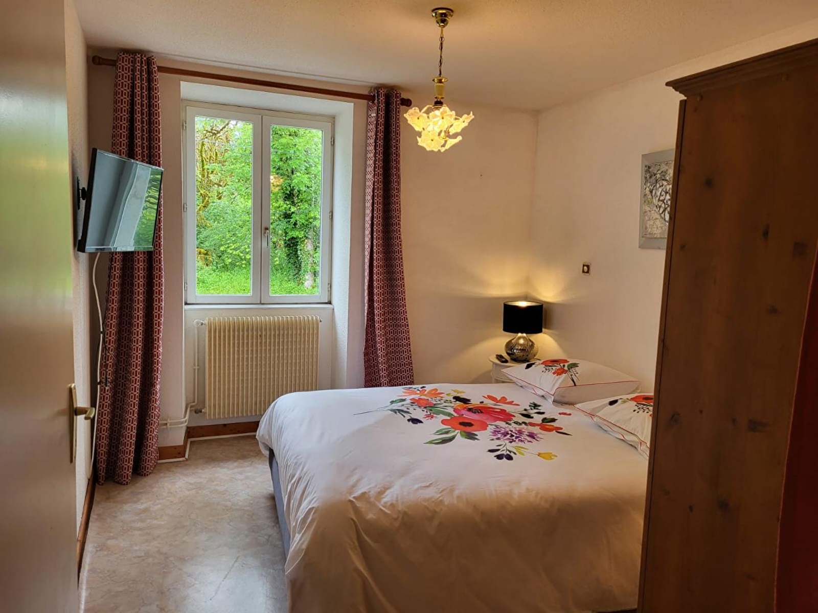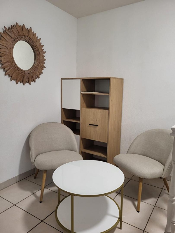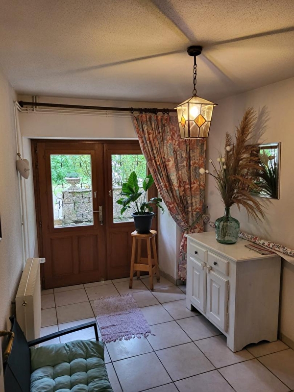 Nichée dans un écrin de verdure, cette maison mitoyenne à celle de la propriétaire se compose au RDC d'une chambre avec 1 lit double (140*190) et TV, d'une salle d'eau avec douche et d'un WC indépendant. A l'étage, pièce de vie avec cuisine toute équipée, coin salle à manger, séjour avec TV, une chambre avec 1 lit double (140*190) et une chambre avec 1 lit double (140*190) et 1 lit simple, salle d'eau avec douche et WC indépendant. Balcon, cour mitoyenne non close, jardin privé non clos, salon de jardin, barbecue. Pas de présence d'animaux en cage. Véritable petit havre de paix, idéal pour le repos.