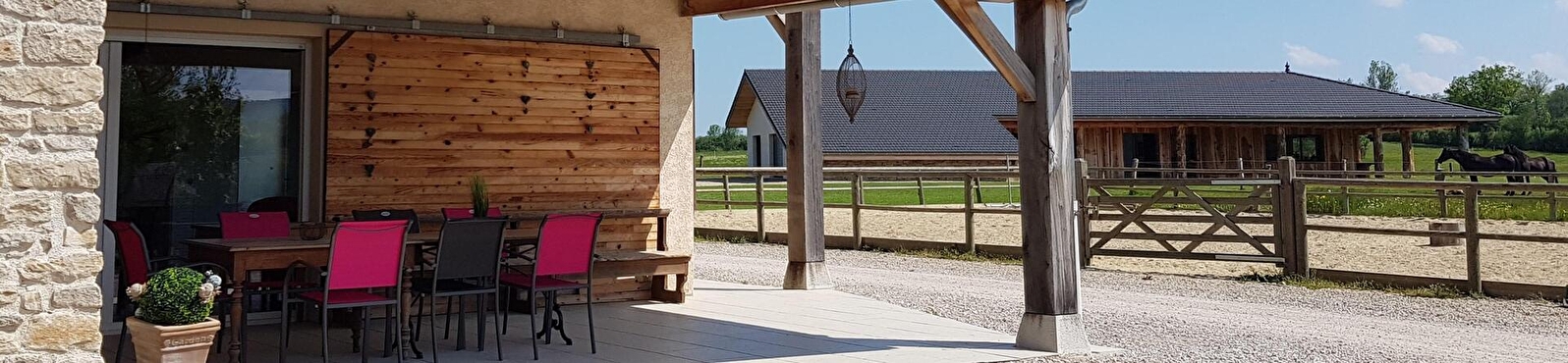 Le gîte "LA BOISERIE" vous accueille au cœur d'un domaine équestre de 9 hectares, dans un cadre naturel exceptionnel et où les animaux de la ferme (chevaux, poneys, chèvres, lamas...) évoluent en toute quiétude et pour le bonheur des amoureux de la nature. Aménagée avec goût et spacieuse (capacité d'accueil jusqu'à 4 personnes), vous profiterez d'un réel confort grâce aux installations mises à votre disposition. Ce logement est composé d'une grande pièce à vivre où se trouvent une partie cuisine entièrement équipée, un espace repas et un salon avec TV et canapé convertible ; 2 chambres l'une avec 2 lits de 90 et l'autre avec un lit de 160 ; une salle d'eau avec douche à l'italienne (toilettes séparées) et terrasse spacieuse. Notre gîte se situe entre monts et vallées, ce qui vous offre le loisir découvrir des sites nommés “plus beaux villages de France” (Château-Chalon, Baume-les-Messieurs), des villages pittoresques ( Poligny ville du Comté ; Arbois – son musée et ses vins ; Salins-les-Bains – ses thermes et fortifications ; Dole – la Venise Jurassienne ; Arc-et-Senans et ses salines classées au Patrimoine Mondial de l'UNESCO...), la région des lacs (Chalai..) et des cascades (du Hérisson, des Tufs...) Possibilité de pratiquer diverses activités : randonnée à pieds, vélo, VTT... (départ depuis le gîte sur des pistes IGN), balades à poneys (activités proposées au sein de notre domaine dans le cadre de notre activité de "Ferme Équestre Élevage Juan"), piscine et thermes, lacs, visite de sites touristiques et culturels... ou tout simplement profiter de notre domaine pour vous reposer sur le temps d'un week-end ou durant quelques jours de vacances Animal de compagnie acceptés gratuitement et dans le respect de la charte d'accueil des animaux de Gîte de France (un par logement – accueil sup avec accord des propriétaires). Une caution de 300 € par animal vous sera demandée. Pour charge de véhicule électrique un surcout sera demandé (voir avec la propriétaire)