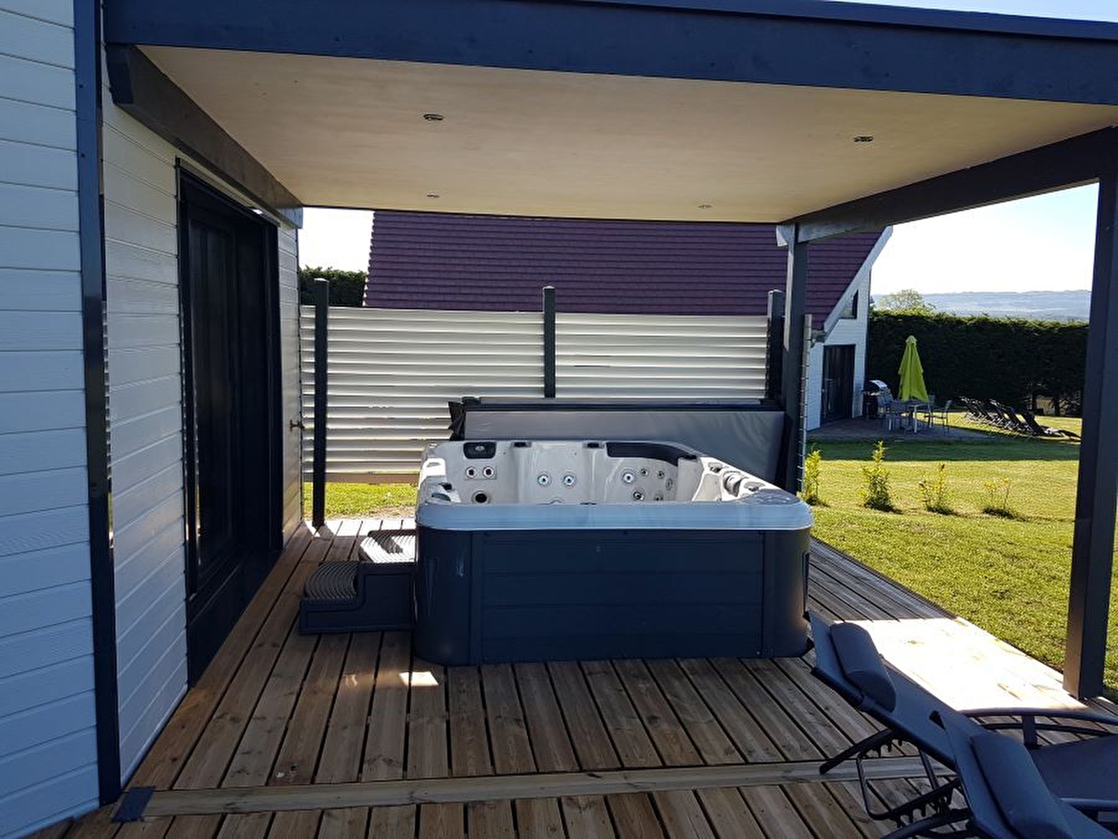 Dans un joli petit village du vignoble jurassien, à seulement quelques kilomètres de Poligny, capitale du Comté, venez séjourner dans cette maison neuve de plain-pied et profiter du calme environnant. Vaste pièce à vivre composée d'un coin salon avec canapé, télévision écran plat, chaine hifi bluetooth, poêle à pellets, et cuisine intégrée entièrement équipée. 1 chambre avec un lit de 160x200 et 2 autres chambres avec 2 lits de 90x200 (qui peuvent être accolés ou dissociés), 1 salle d'eau avec grande douche et 1 WC séparé. Terrasse avec SPA privatif ouvert toute l'année, salon de jardin et barbecue, offrant une magnifique vue sur le parc à Daims des propriétaires. Vaste terrain attenant clos. Pour votre plus grand confort, les linges de toilettes sont fournis et les lits sont faits à l'arrivée. Pour les amateurs de pêche, vous aurez accès à l'étang privé des propriétaires (prêt de matériel de pêche sur demande). Adresse à découvrir absolument, n'attendez plus pour réserver ! Le plus du gîte : climatisation réversible. 90 € de caution si les clients ne prennent pas le forfait ménage.