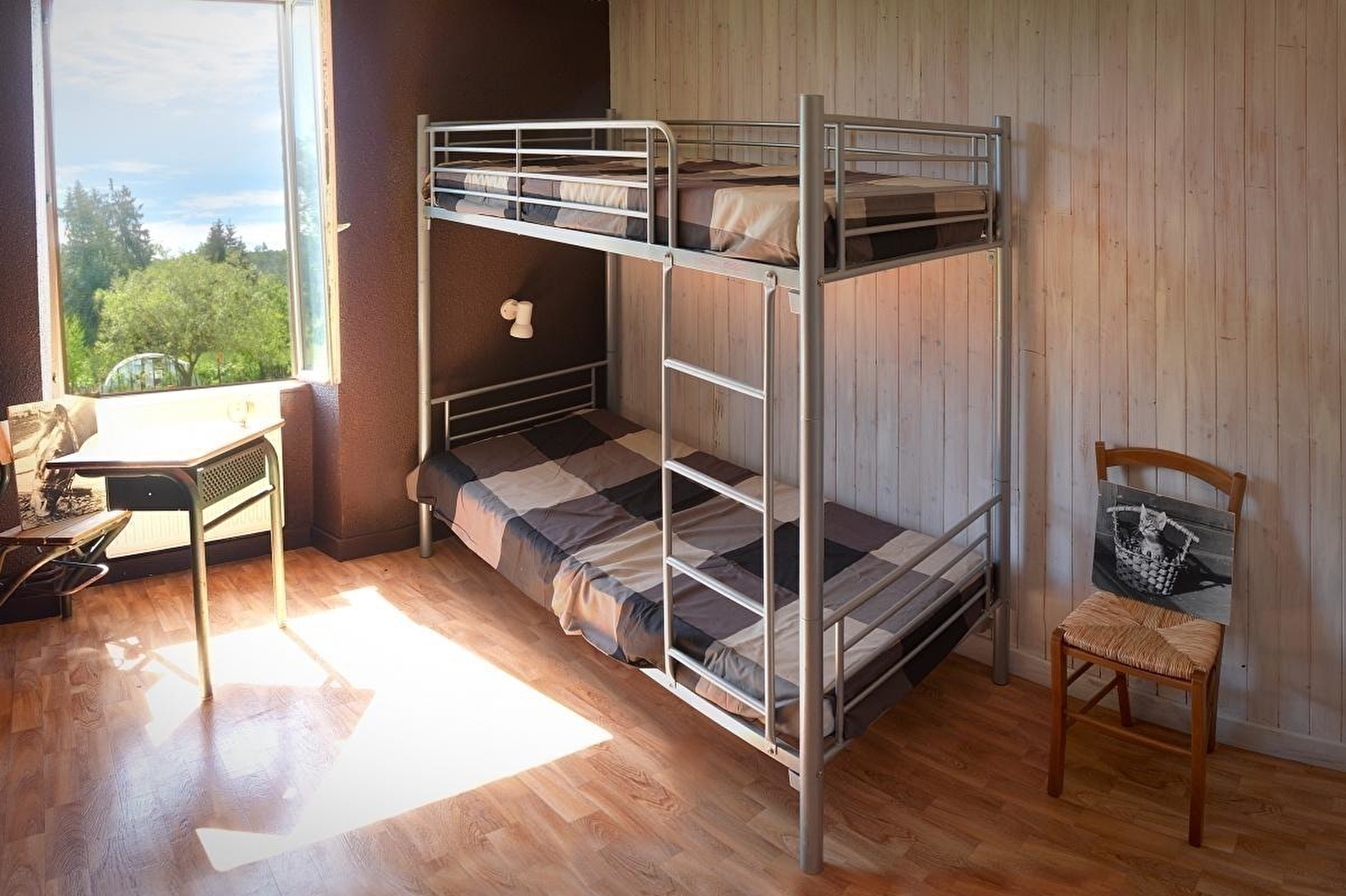 Très beau logement au RDC de la maison des propriétaires avec accès par un perron. Le gîte est entièrement rénové dans un style chaleureux avec cuisine équipée, salle à manger avec coin salon, canapé convertible (possibilité de 2 couchages supplémentaires), WC, Salle de bain (douche à l'italienne), Ch1 : 2 lits 1 pl superposés, Ch2 : 1 lit 2 pl. Terrain attenant non clos avec salon de jardin, barbecue. Les propriétaires auront plaisir à vous présenter leur nombreux animaux (poules, chèvres, lapins). Séjour idéal pour une famille. Bois de cheminée fourni gratuitement.