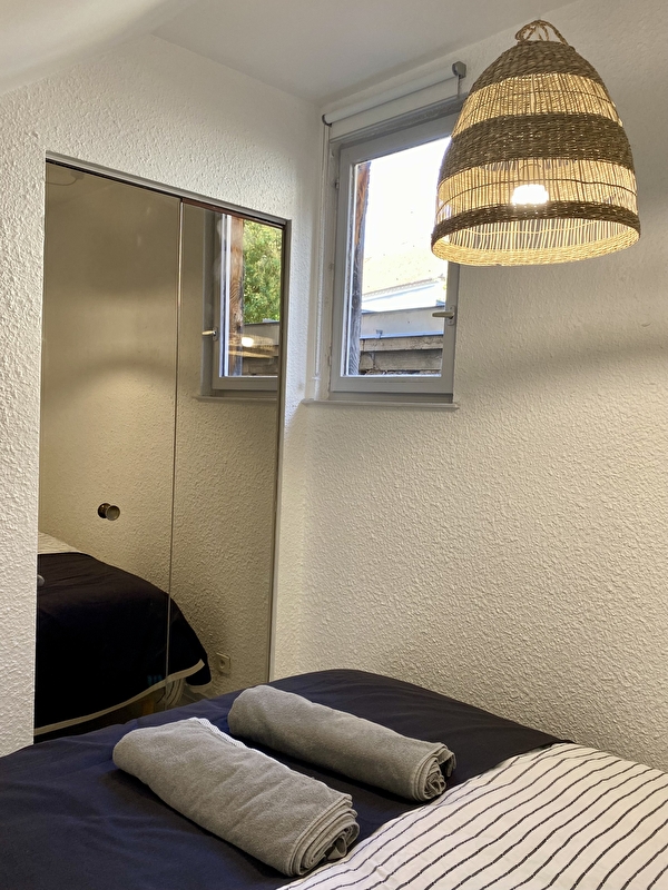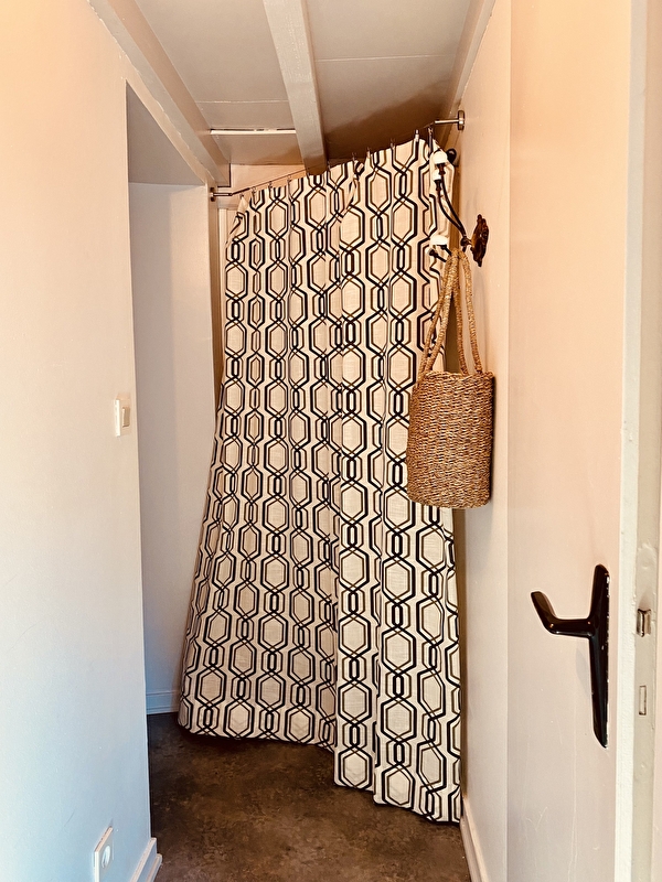 Appartement en duplex au deuxième et dernier étage d’un immeuble ancien. Ce T1 rénové donne sur une cour calme et arborée (possibilité de garer les vélos).