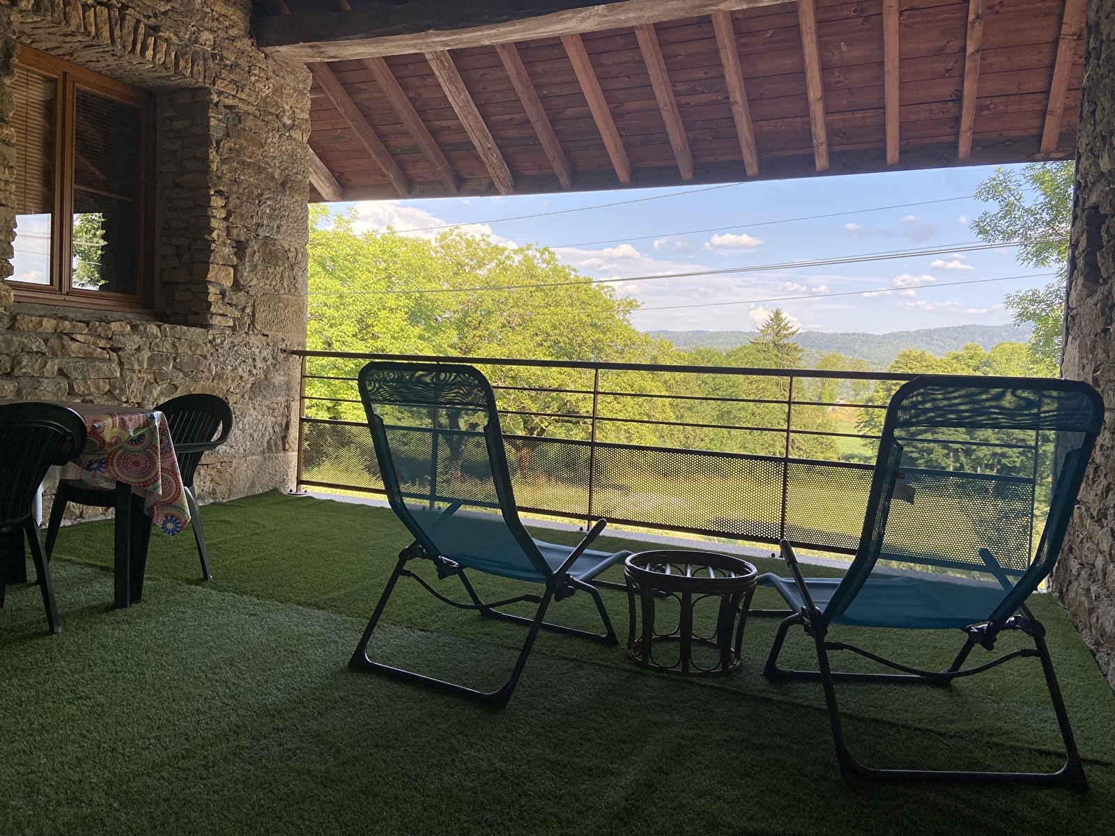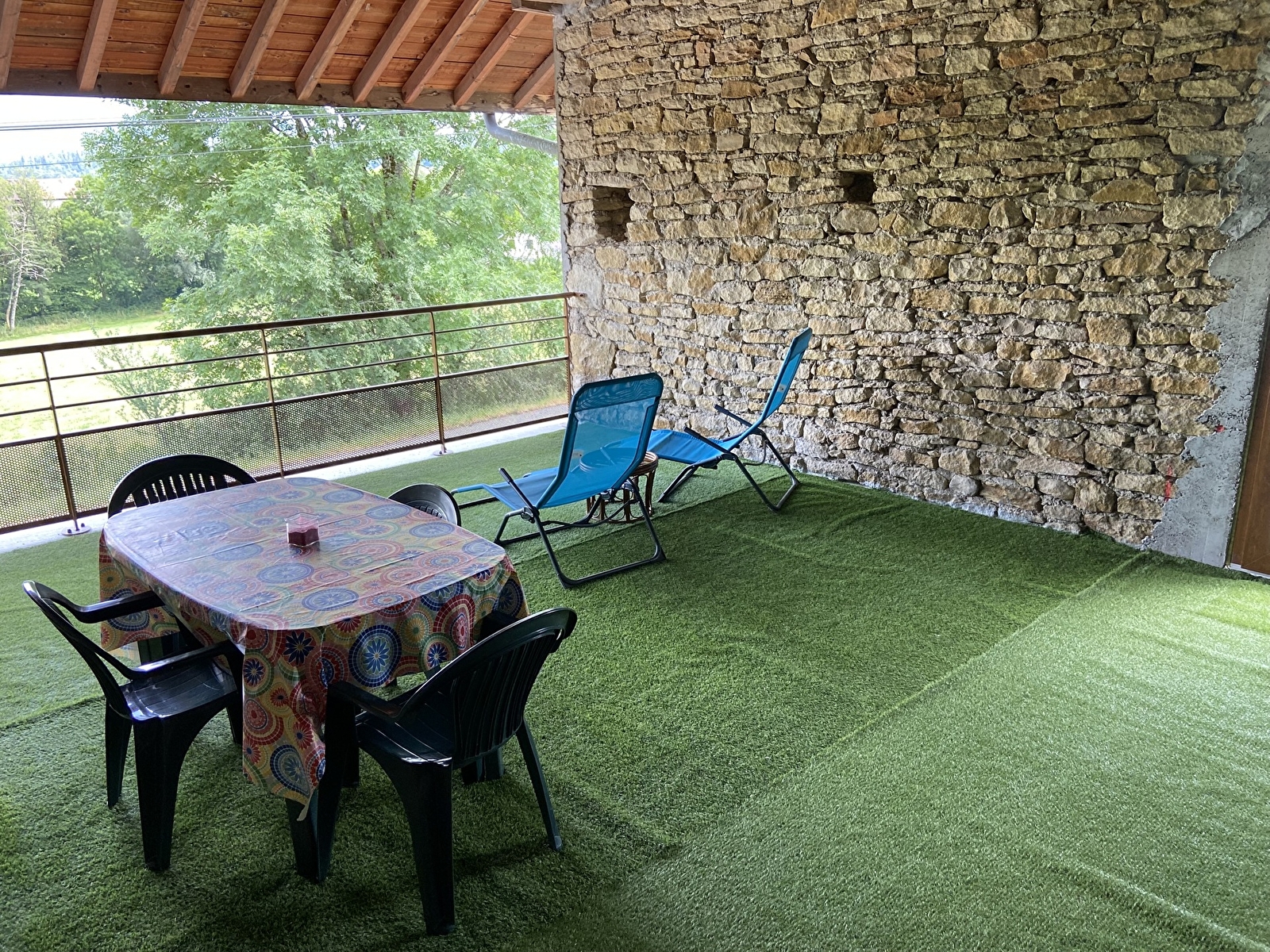 Cette location de vacances dispose d'une grande terrasse couverte privée pour des soirées de détente.