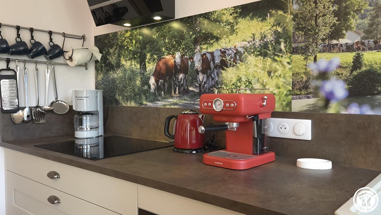 Nichés sur les hauteurs du hameau d’Indrieux, commune d’Arandas, Le Mouton d’Amédée est un mixte entre deux gîtes mitoyens, et un accueil de 12 personnes.
