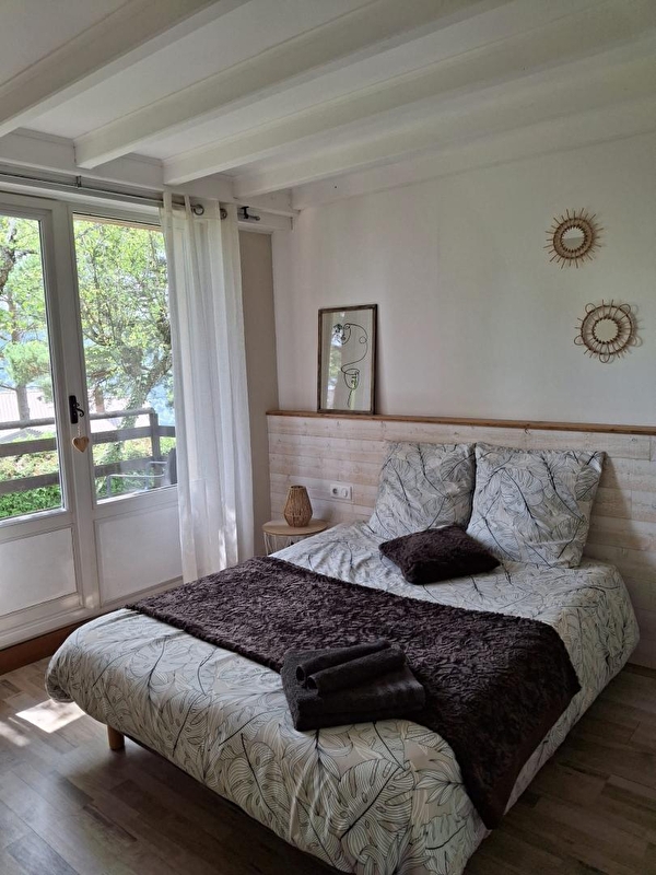 Sur les hauteurs de Maisod, au calme et à proximité immédiate du lac de Vouglans, cette maison se compose d'une pièce de vie avec cuisine toute équipée, d'un coin salon avec canapé/TV et poêle à bois, d'un coin bibliothèque avec jeux enfants et livres, d'une chambre avec 1 lit double (140*190), d'une chambre avec un lit double (160*200), d'une salle de bain avec baignoire et d'un WC indépendant. La 3ème chambre, uniquement accessible par l'extérieur et aménagée en sous-sol (hauteur de plafond = 185 cms) se compose d'un lit double (140*190), d'un coin kitchenette et d'une salle d'eau avec douche et WC (idéal pour 2 personnes qui souhaitent partir en famille ou entre amis tout en gardant leur indépendance). Côté extérieur, vous pourrez profiter d'une terrasse couverte avec salon de jardin et d'un jardin arboré et ombragé avec chaises longues et fauteuils de jardin Idéalement située, les premières plages et le petit port de plaisance avec mise à l'eau sont accessibles en 5 mns en voiture, plusieurs sentiers de randonnées cyclo et pédestre au départ du gîte menant jusqu'au lac. Vous pourrez également déguster et découvrir les secrets de fabrication du célèbre Comté à la fruitière de Thoiria (10 mns en voiture) et admirer les cascades du Hériosson en une trentaine de minutes.