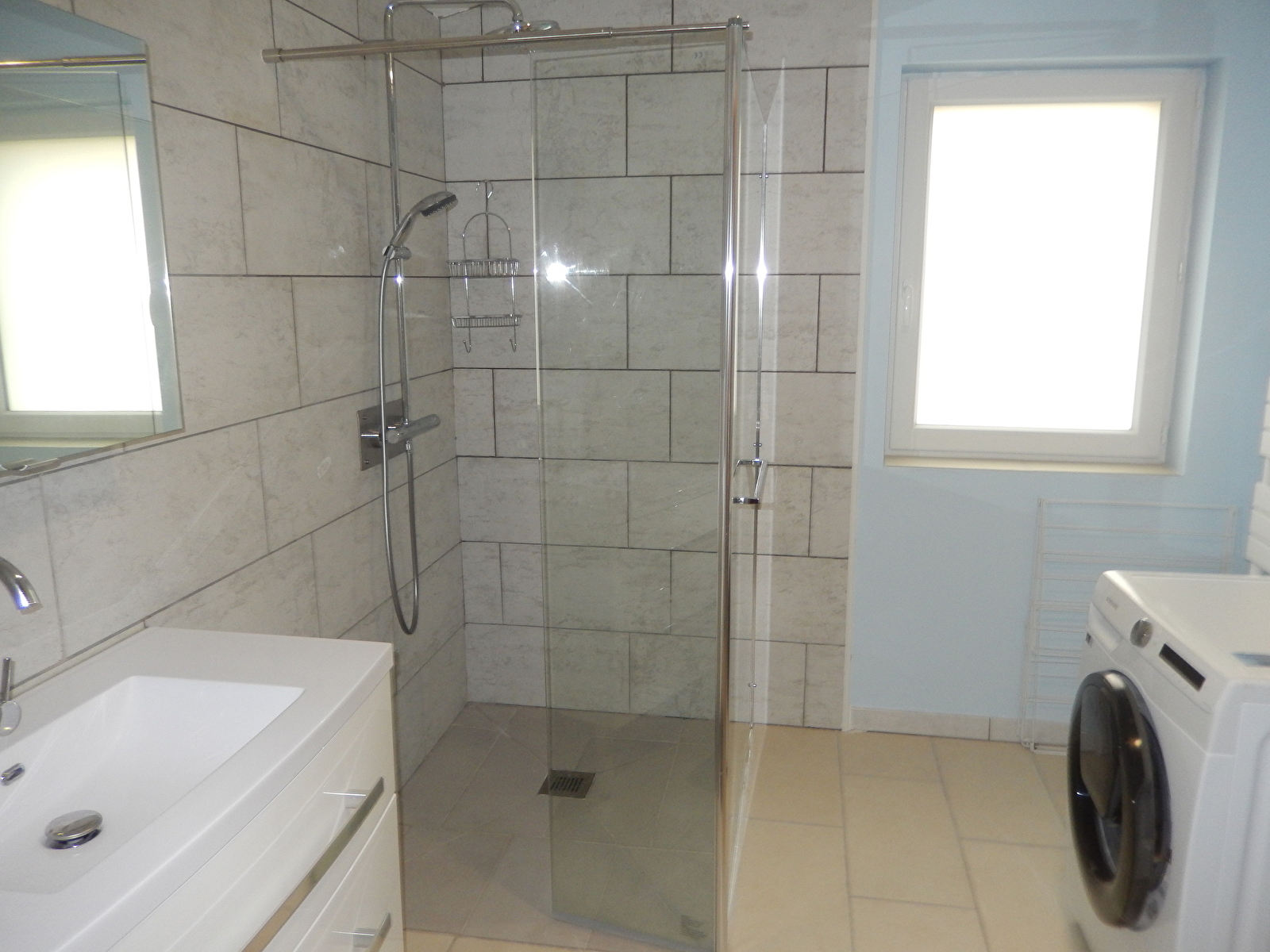 petite maison indépendante entièrement rénovée, avec au rez de chaussé, une cuisine équipée donnant sur un salon, une salle de bain( douche italienne) wc et un lave linge; à l'étage, une chambre avec un lit de 160 et un lit bébé, une deuxième chambre de trois lits une personne et un wc.