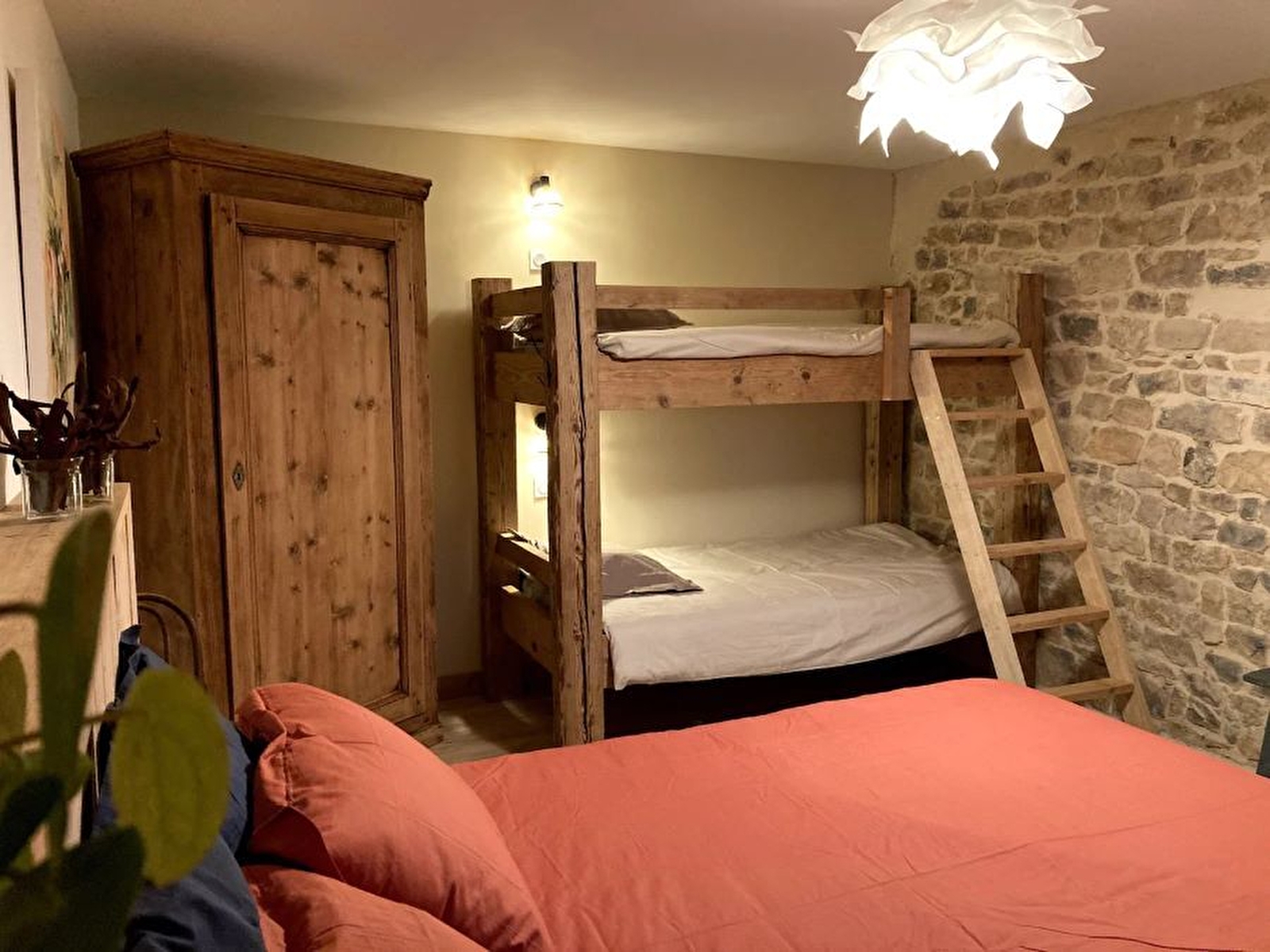 Laissez-vous charmer par ce gîte où l'alliance de la pierre et du bois confère une atmosphère chaleureuse et cocooning. Aménagé dans une ancienne ferme au 1er étage de la maison des propriétaires, cet appartement en duplex entièrement rénové, se compose d'une vaste pièce de vie avec cuisine toute équipée, d'un salon avec TV et poêle à bois pour passer d'agréables soirées au coin du feu, d'une chambre avec 1 lit double (160*200) et 2 lits superposés, d'une salle d'eau avec douche et WC. A l'étage, 2 chambres, l'une avec un lit double (160*200) et 2 lits simples, et la seconde avec un lit double (160*200) et 2 lits superposés, une salle d'eau avec douche et WC. Pour votre plus grand confort les lits seront faits à votre arrivée et les linges de toilettes sont fournis. Côté extérieur, vous pourrez profiter d'un salon de jardin, de transats et d'un barbecue. Idéalement situé pour les amateurs de loisirs de pleine nature : randonnée pédestre, VTT, ski de fond... vous pourrez également découvrir la cascade de la Billaude (7 kms) et les cascades du Hérisson (11 kms) ou vous laissez tenter par une excursion en Suisse (35 kms)
