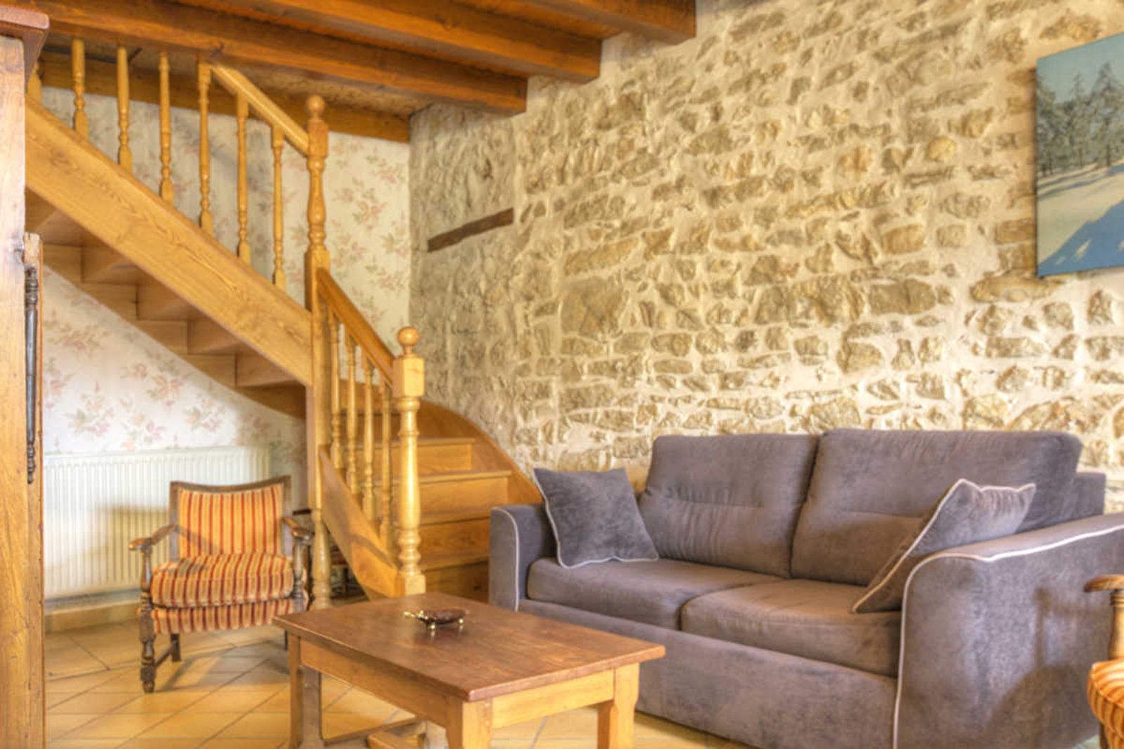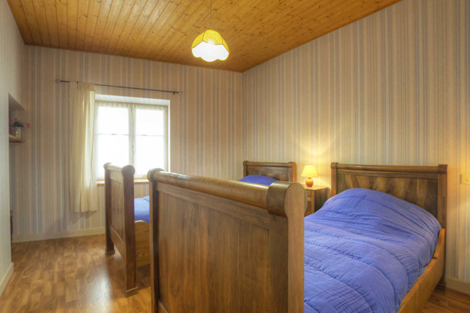 Séjour avec cuisine intégrée et coin-salon, salle de bains, 2 chambres (1 lit 2 pers. 2 lits 1 pers.). Chauffage central fioul. Garage avec l-linge. Balcon et cour privative fermée, salon de jardin, bac à sable. Restauration à 2 km. Date rénovation: 1994. Forfait ménage poss: 40€.