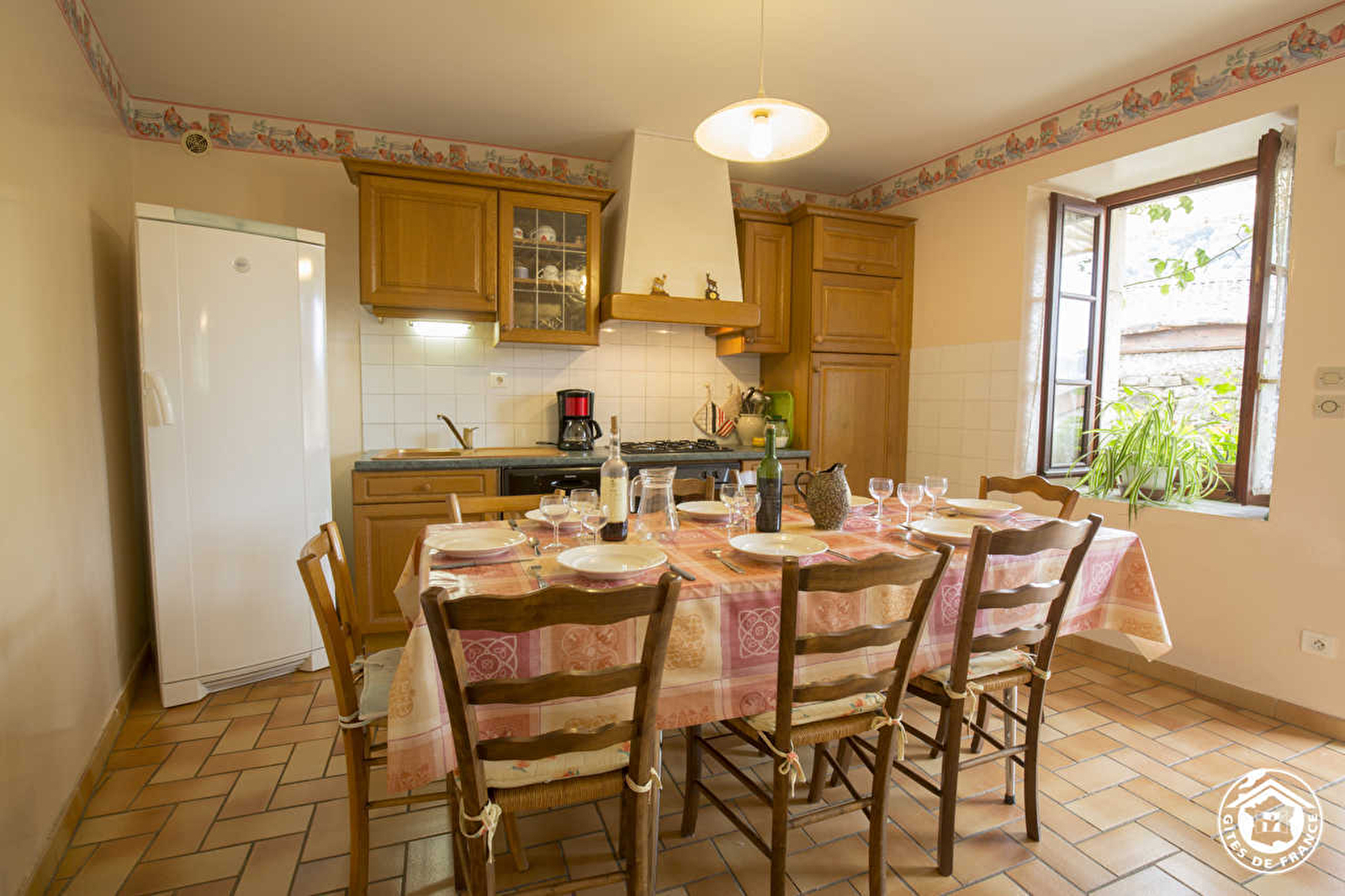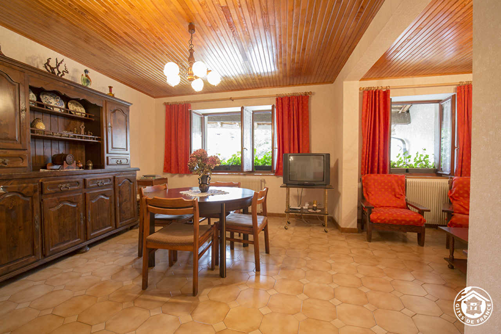 Au rdc access. par 3 marches : cuisine intégrée, séjour avec espace détente, salle de bain. Deux marches plus hauts, 2 ch. avec chacune 1 lit 2 pers., wc indépendant. A l'étage : 2 ch. avec chacune 1 lit 2 pers., salle de bain, wc ind. Chauffage central. Garage (lave-linge, congélateur). Terrain clos. A découvrir : la vallée de l'Ain, pêche, site naturel, base de loisirs de Chambod (9km), raid nature (8km): accrobranche, gorges de l'Ain, ...Date rénovation: 1996.