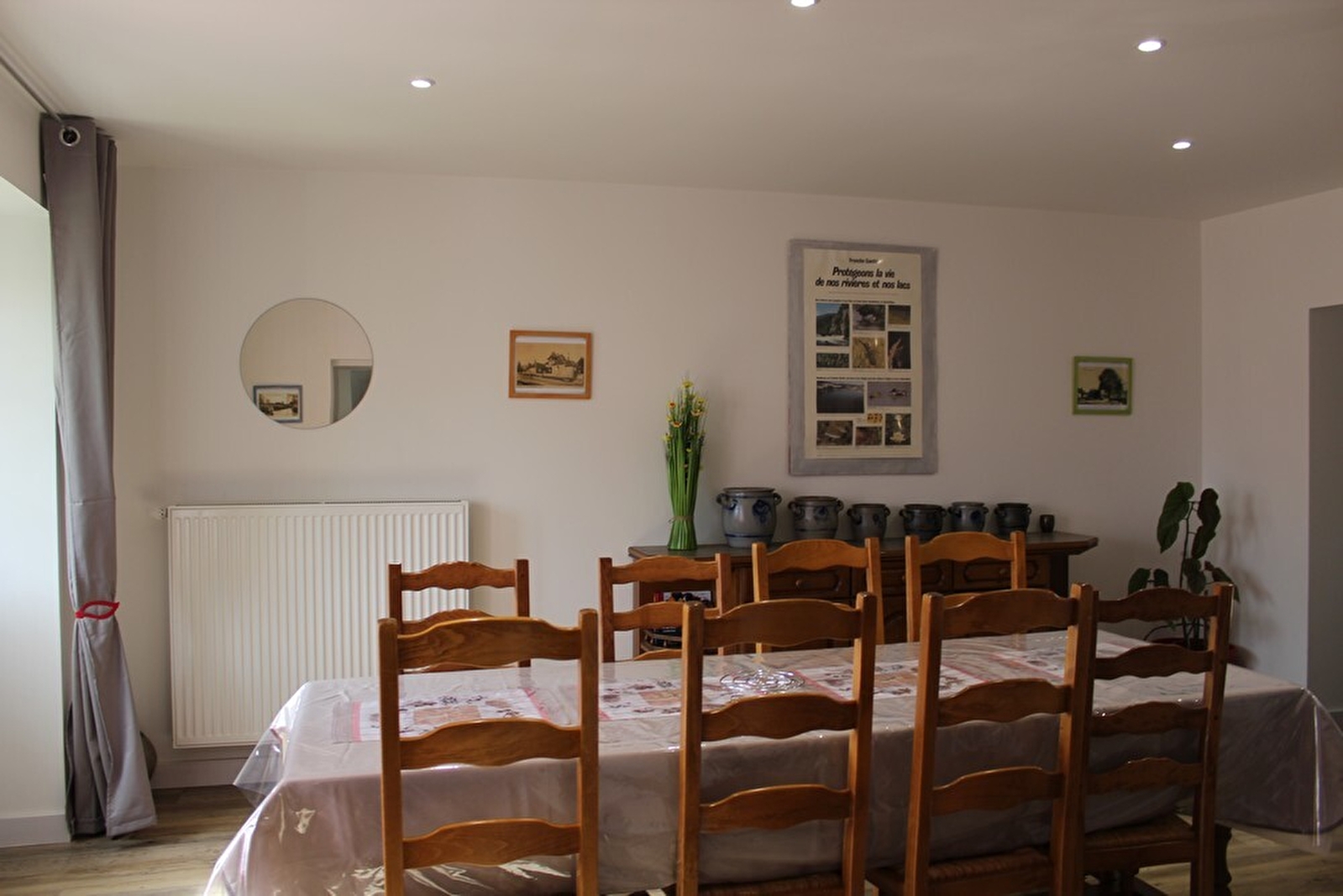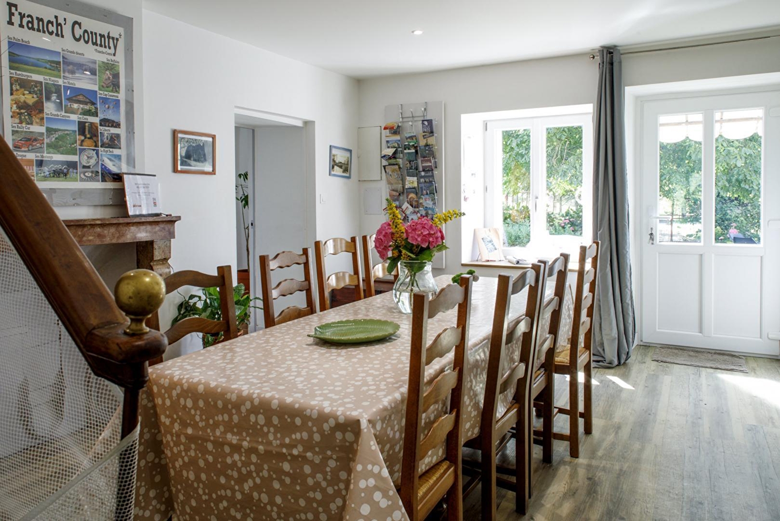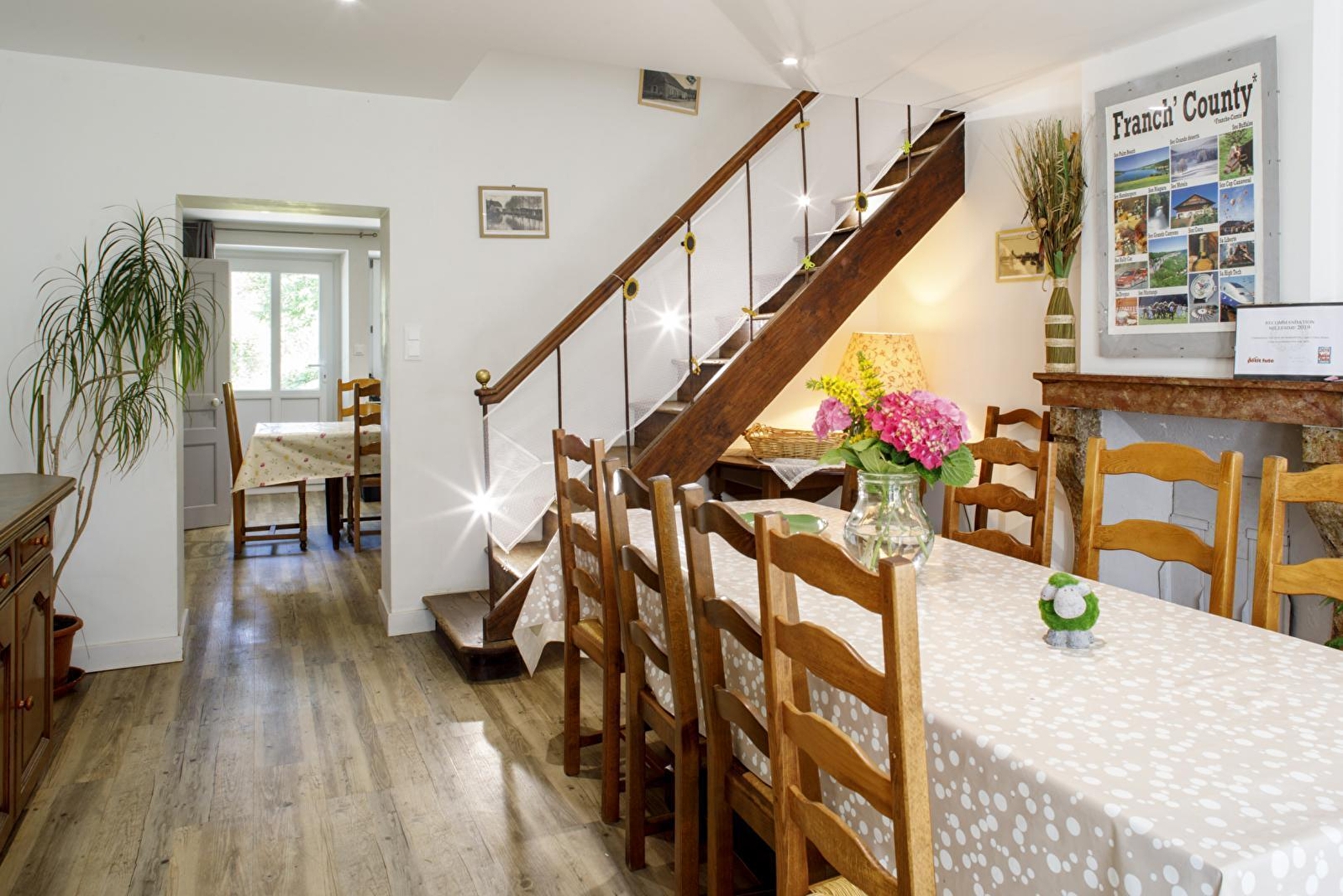 Entre Dole et Lons le Saunier, dans le charmant petit village où à vécu l'écrivain Marcel Aymé, maison mitoyenne à celle des propriétaires, entièrement rénovée, pouvant accueillir jusqu'à 12 personnes. Au rez-de-chaussée, salon avec télévision écran pla, salle à manger, cuisine équipée, une première chambre avec 6 lits une place superposés, une salle d'eau (toilettes intégrés) avec grande douche et salle de bain avec baignoire. Toilettes indépendants. A l'étage, une seconde chambre avec 1 lit de 140cm et 2 lits gigogne une place. Une troisième chambre avec 1 lit de 140cm. Petit terrain attenant à disposition avec salon de jardin et barbecue. Accès à l'étang empoissonné des propriétaires (prêt de matériel de pêche sur demande) ainsi qu'à leur piscine creusée pendant la belle saison (de 10H à 18H). Possibilité de garage fermé pour motos et vélos. Possibilité de réserver en plus un gîte mitoyen pour 4 personnes (G2604).