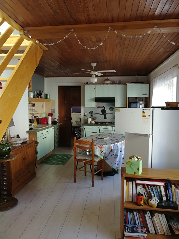 Le gîte de Mémé est une petite maison individuelle avec au rez-de-chaussée, une petite entrée, l'accès à la salle de bain par 3 petites marches, un coin séjour avec canapé convertible, une cuisine équipée et une chambre avec un lit double. A l'étage, une chambre mansardée peut accueillir 2 enfants ou 2 adultes (lits simples).
