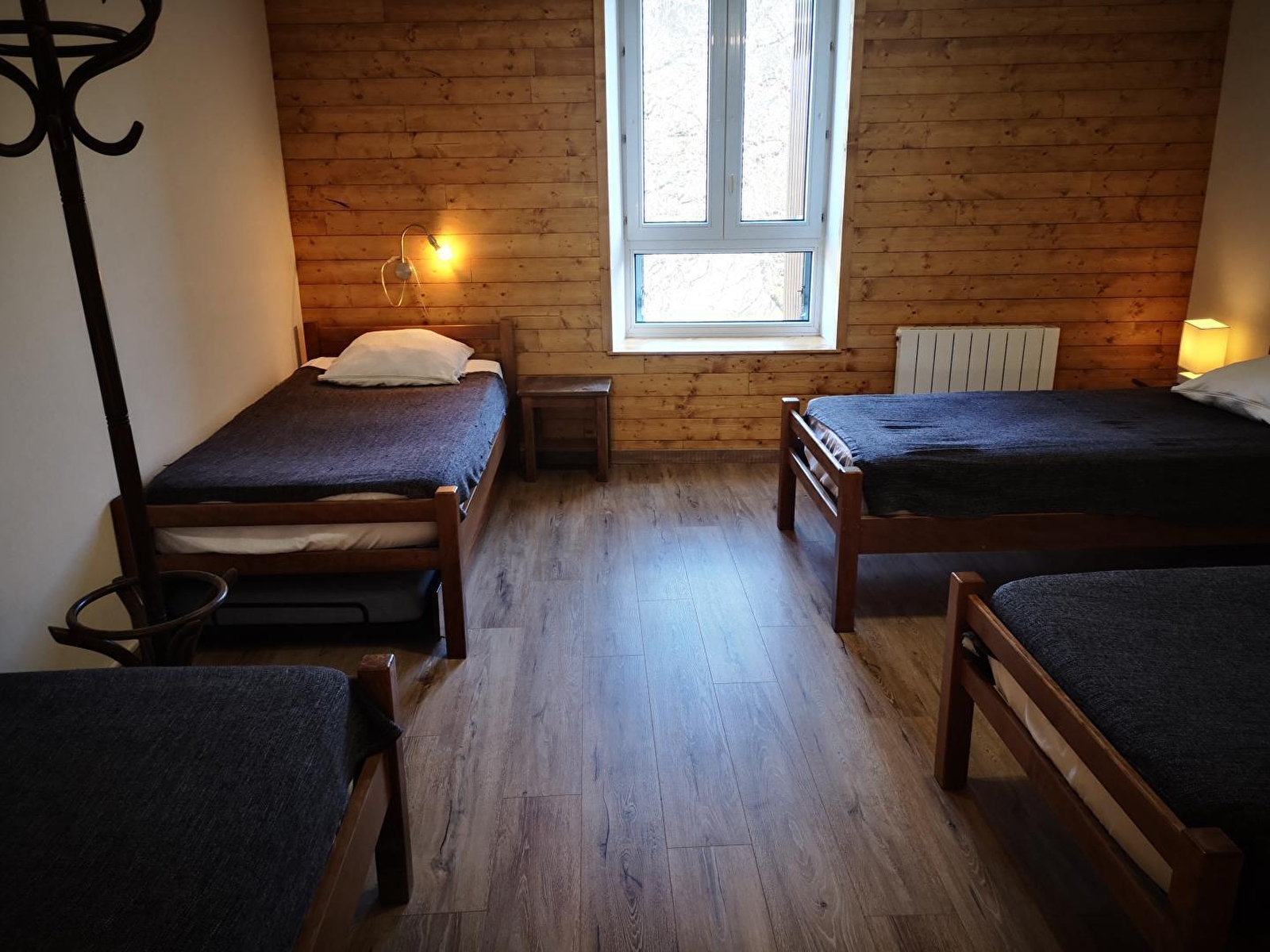 Cette location de vacances (rénovée sols et murs début 2024) se compose d'un vaste séjour avec un coin cuisine tout équipé et un canapé pour des moments de détente après vos escapades. Il dispose de deux chambres : l'une avec quatre lits simples (90x190), parfaite pour les familles ou les groupes d'amis, et l'autre avec un lit double (140x190). Une salle de bain et des toilettes séparées complètent cet espace, conçu pour votre confort.